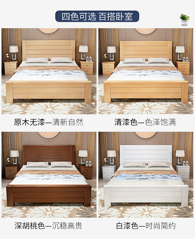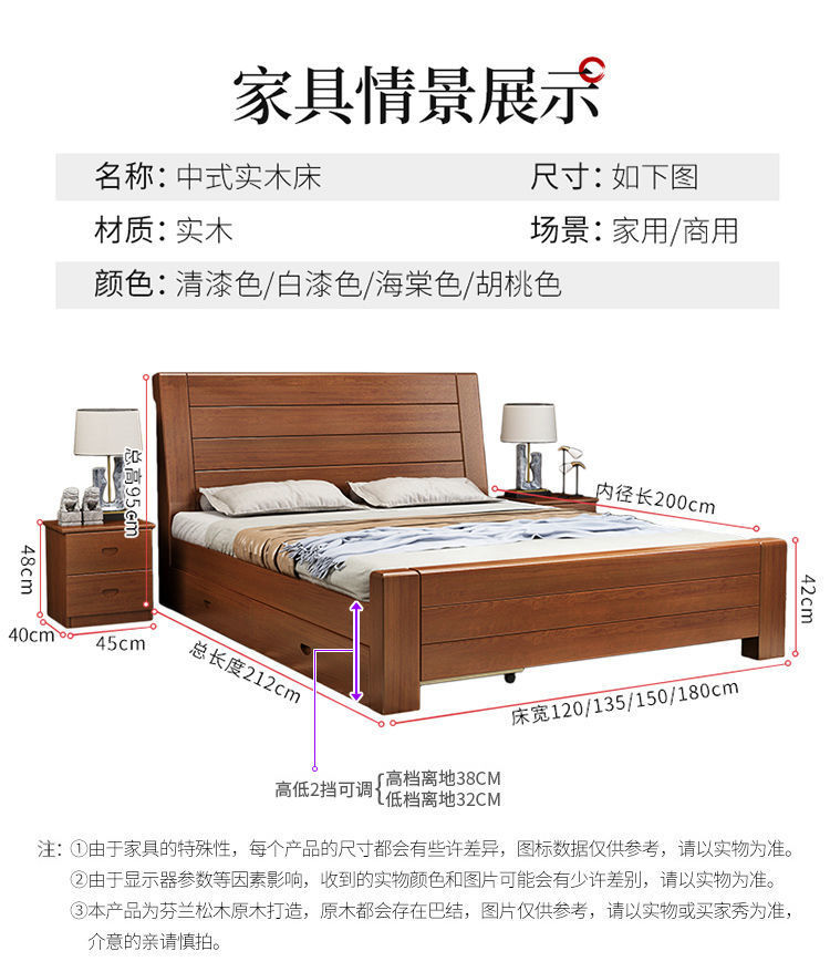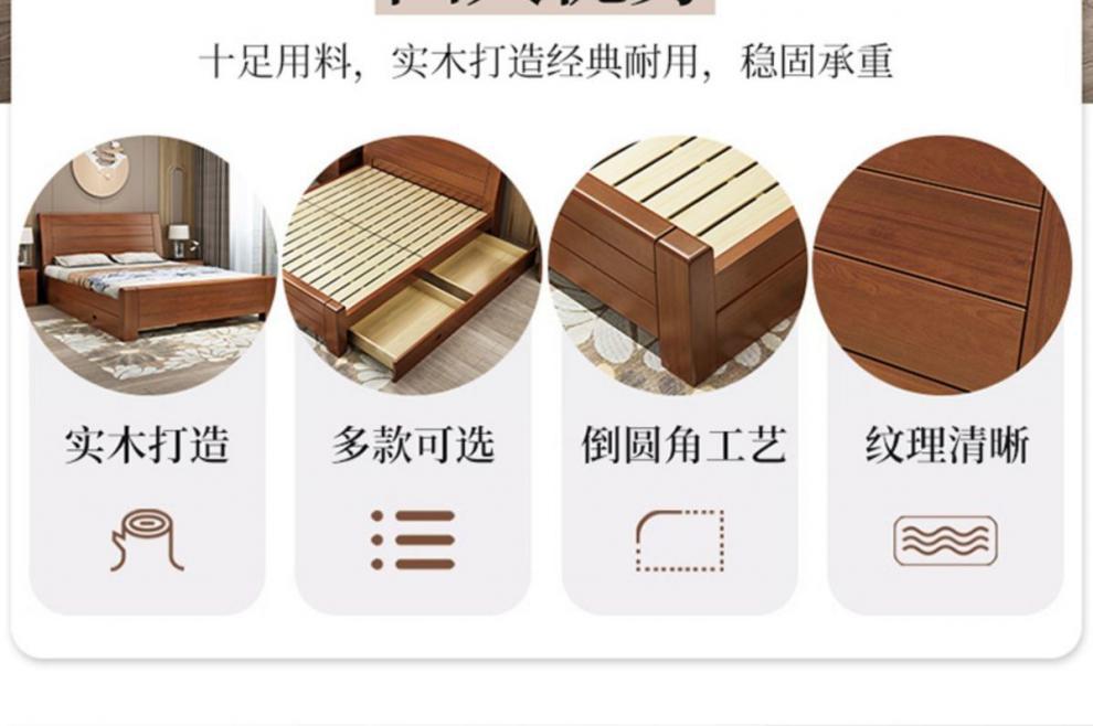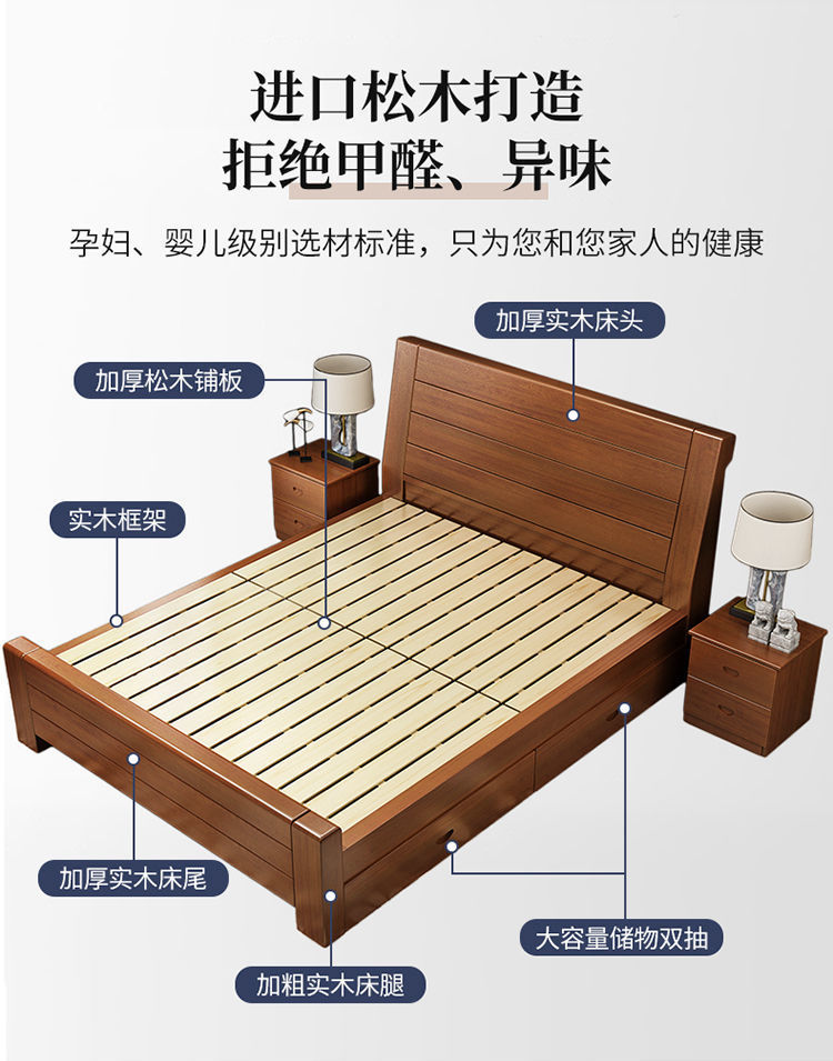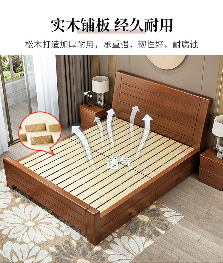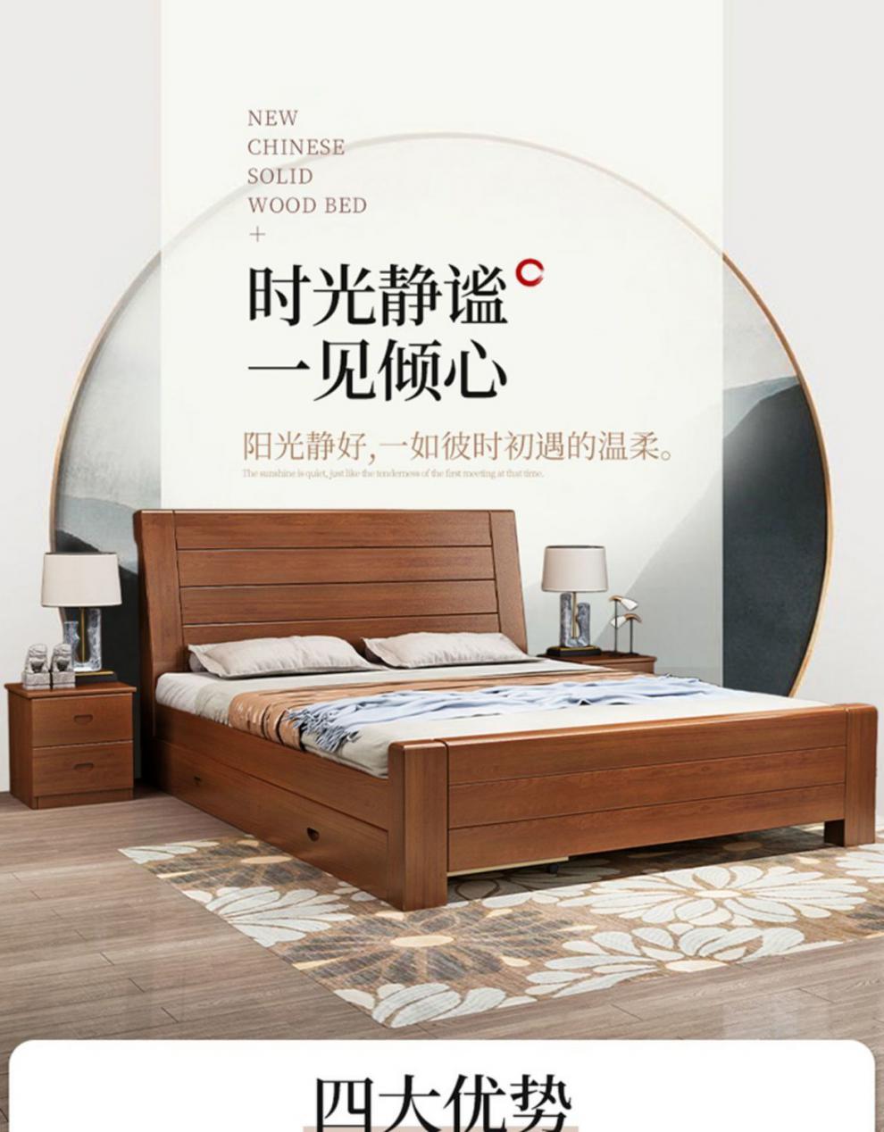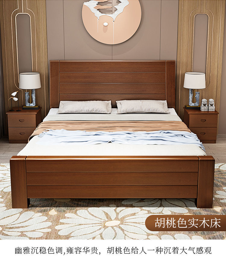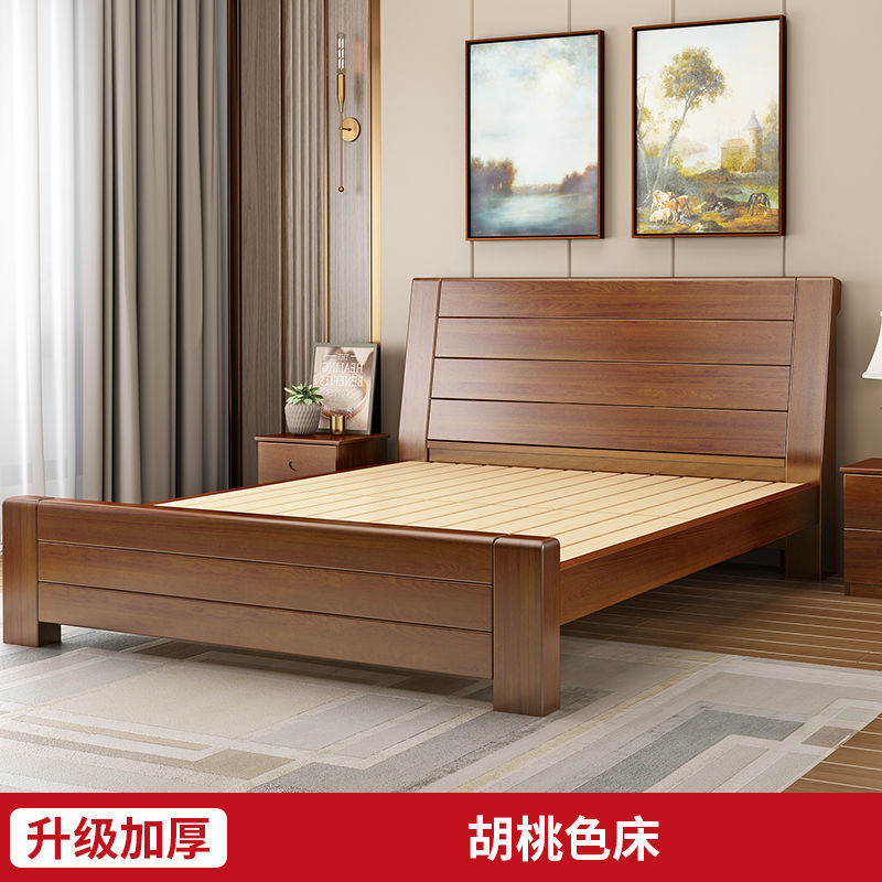 침대 현대 간단한 1.8 m 단단한 나무 큰 침대 북유럽 스타일 1.5 m 더블 침대 경제적 1 m 성인 부드러운 가방 침대스토어 가기