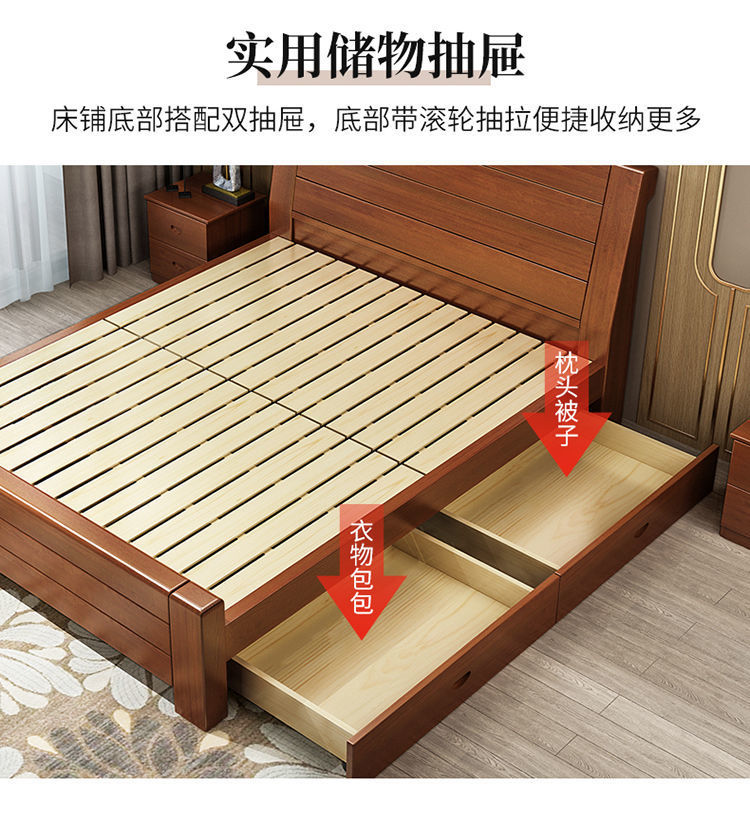 • 호두 색 맨손 침대 + 서랍 업그레이드 두껍게