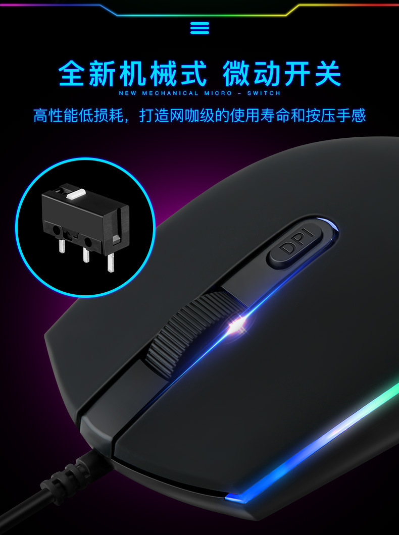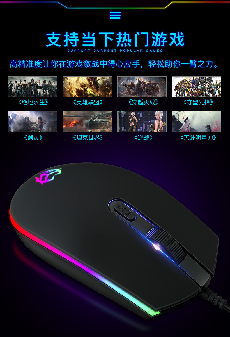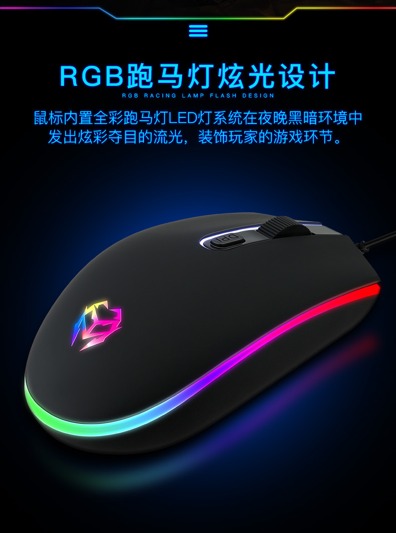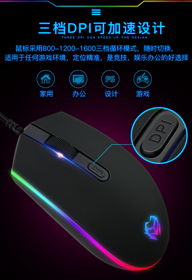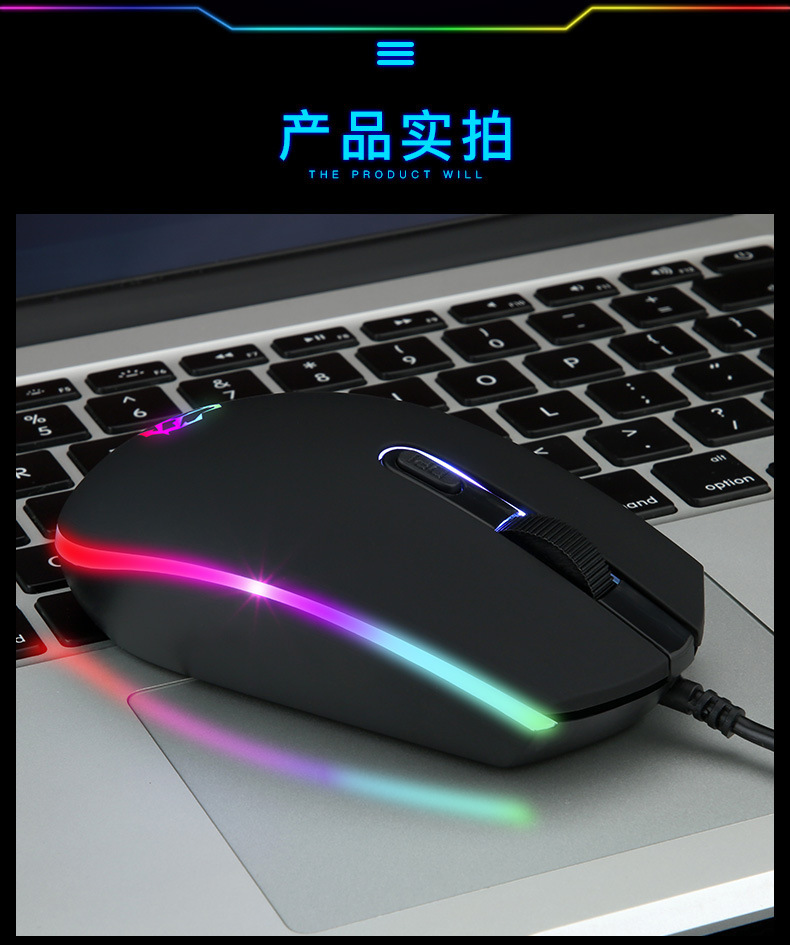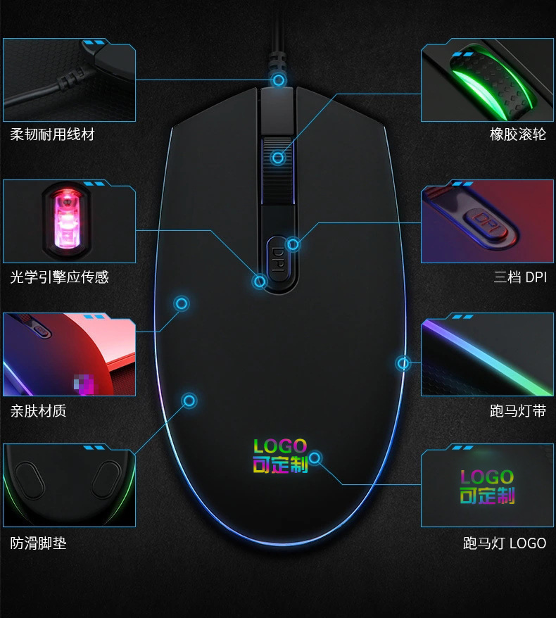 공장 재고 RGB 조명 유선 마우스 3 단 가변 속도 비즈니스 사무실 게임 e 스포츠 광학 마우스