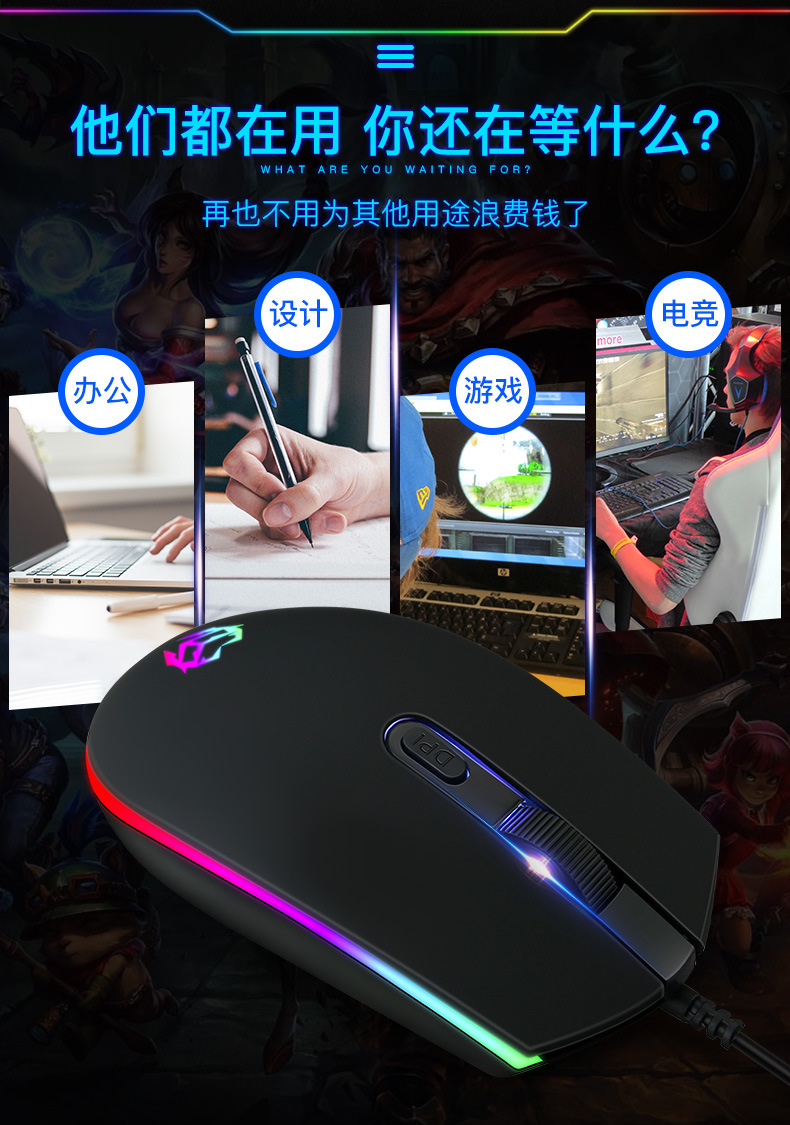 공장 재고 RGB 조명 유선 마우스 3 단 가변 속도 비즈니스 사무실 게임 e 스포츠 광학 마우스스토어 가기