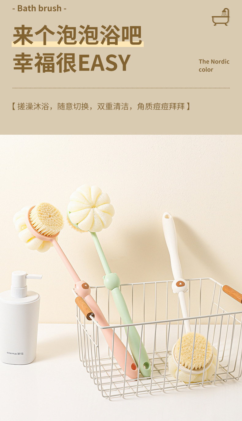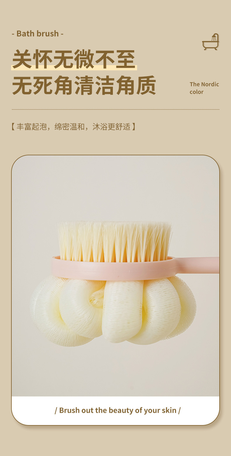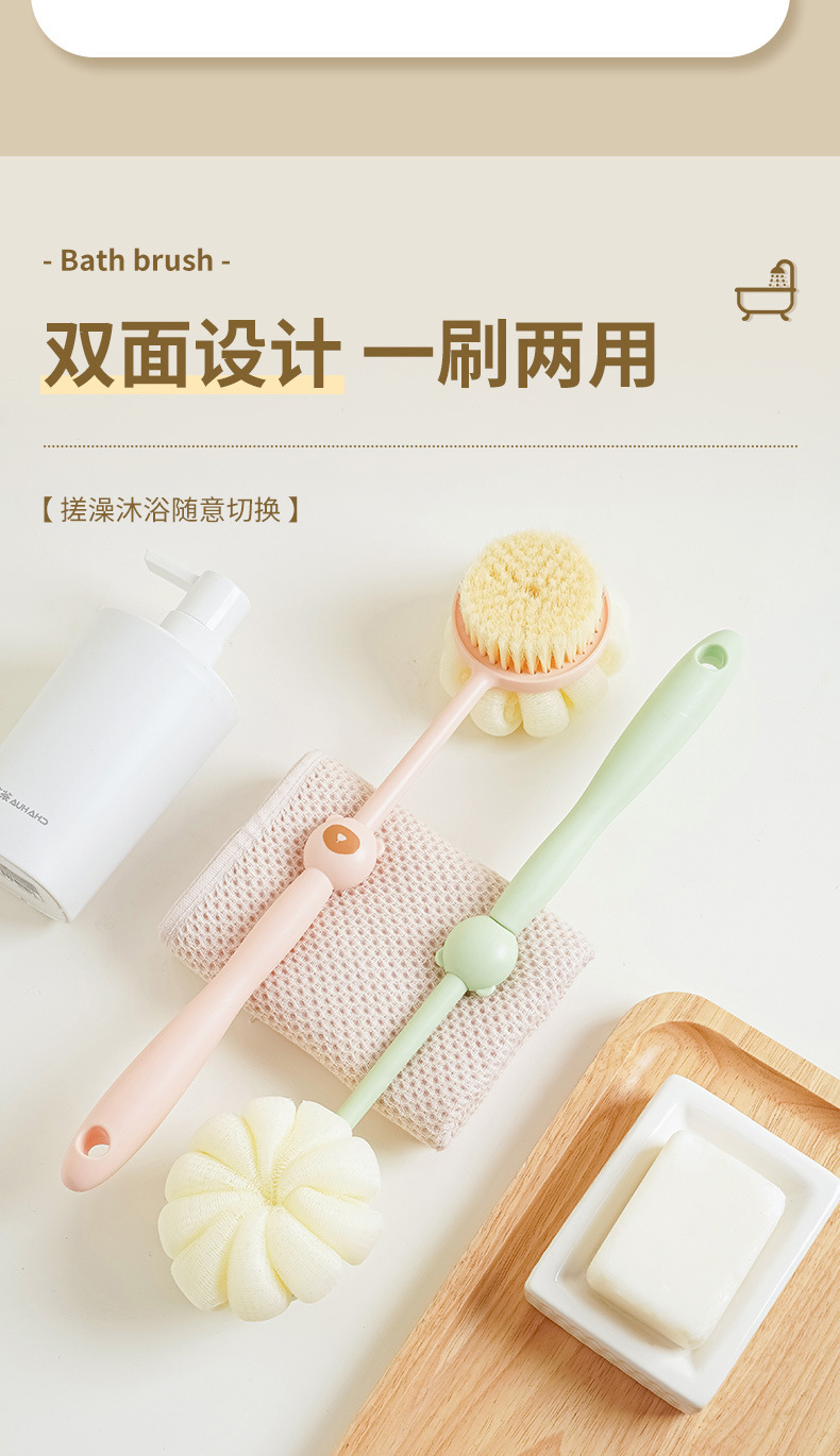 다기능 목욕 브러시, 긴 손잡이, 부드러운 모의 목욕볼, 가정용 목욕 타월, 양면 각질 제거 및 먼지 제거 목욕 도구스토어 가기