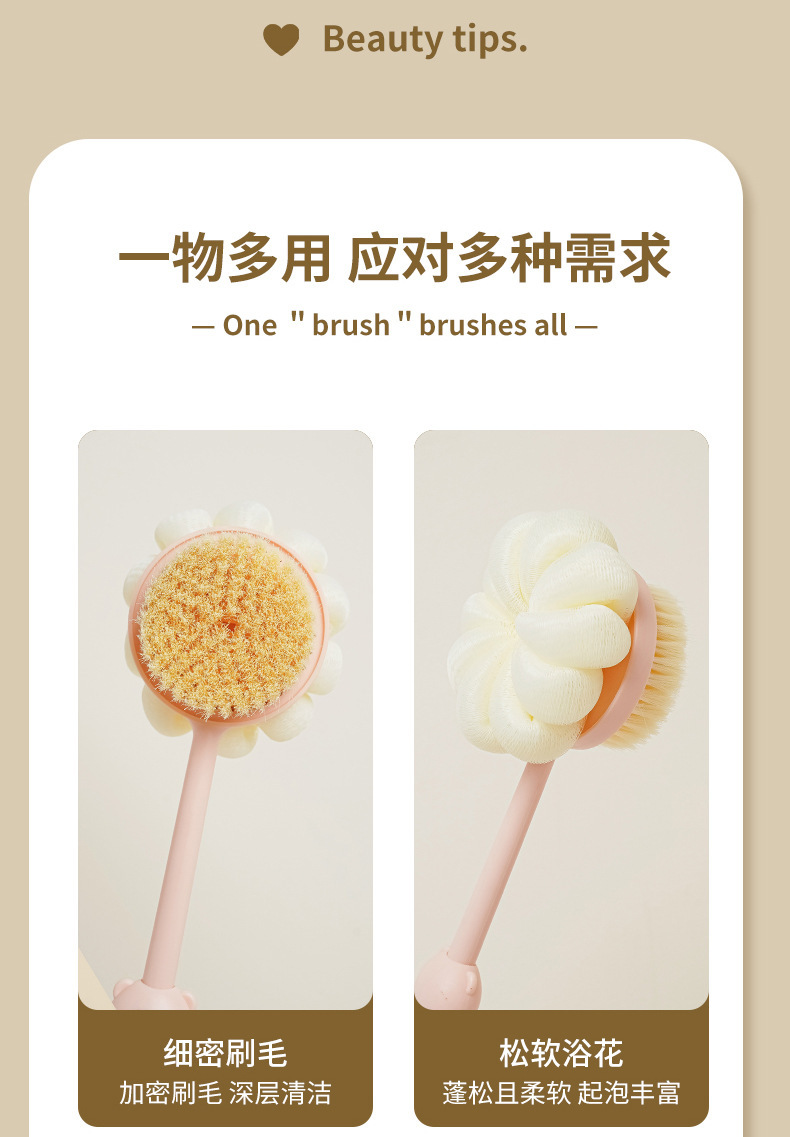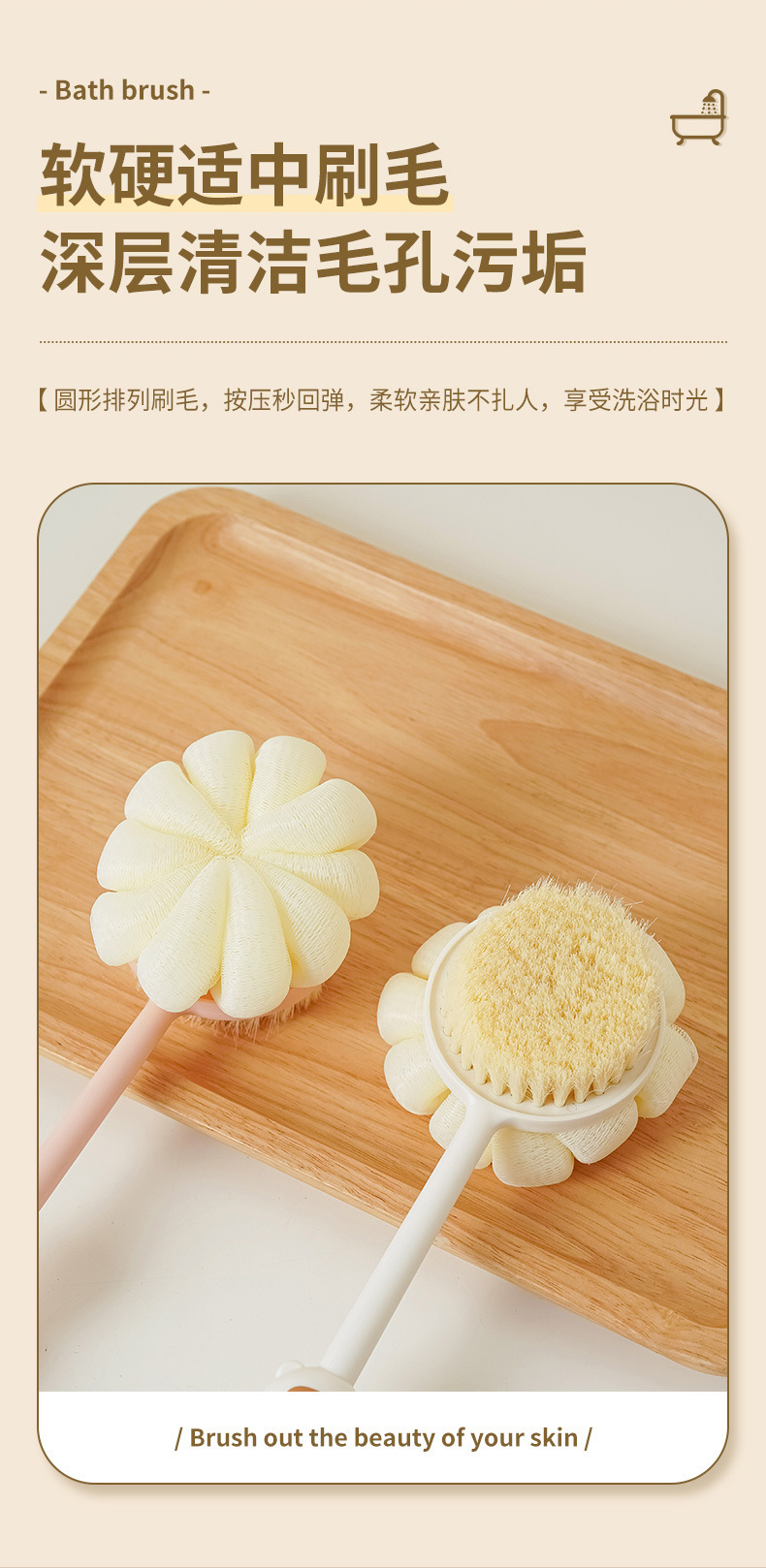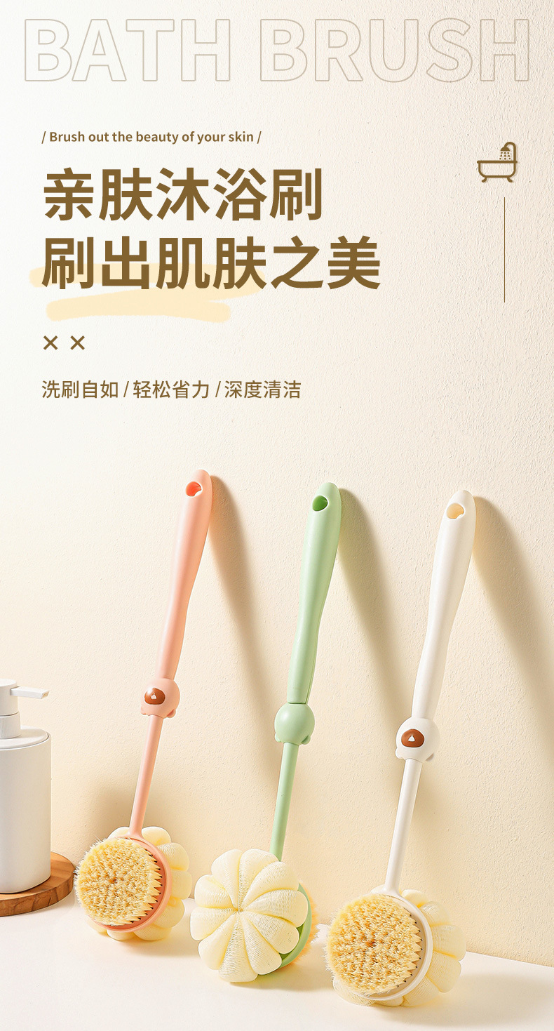 다기능 목욕 브러시, 긴 손잡이, 부드러운 모의 목욕볼, 가정용 목욕 타월, 양면 각질 제거 및 먼지 제거 목욕 도구스토어 가기