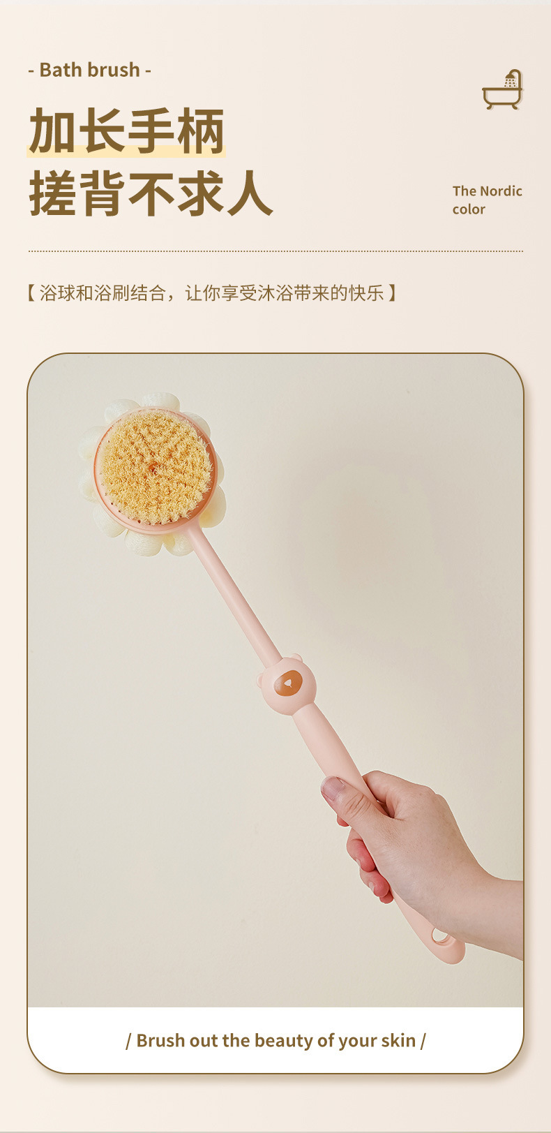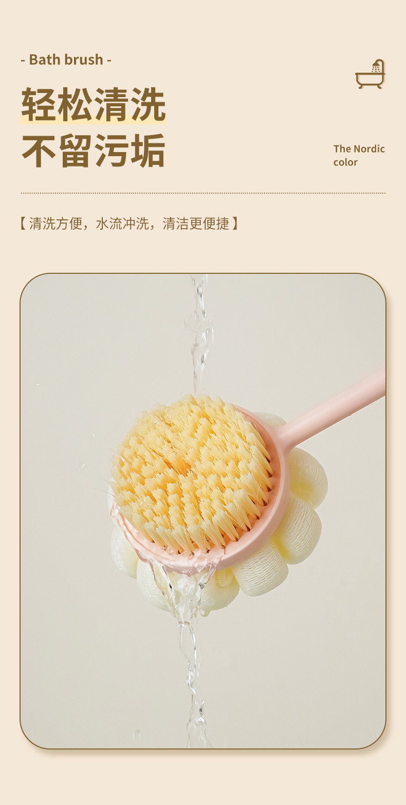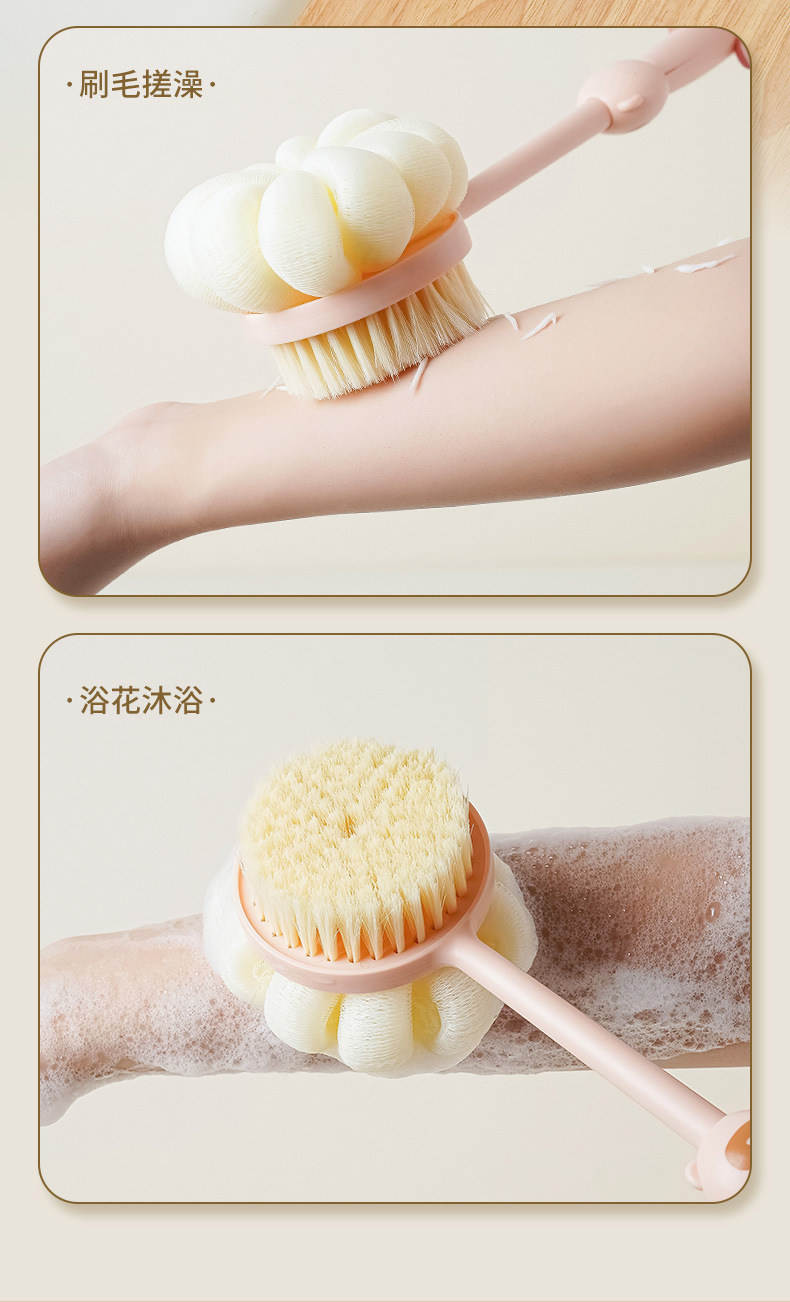 다기능 목욕 브러시, 긴 손잡이, 부드러운 모의 목욕볼, 가정용 목욕 타월, 양면 각질 제거 및 먼지 제거 목욕 도구