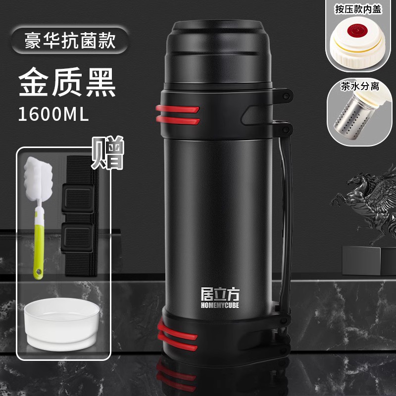 • 스테인리스 보온병 항균 [블랙 2000ml] [차/물 분리형] 1개