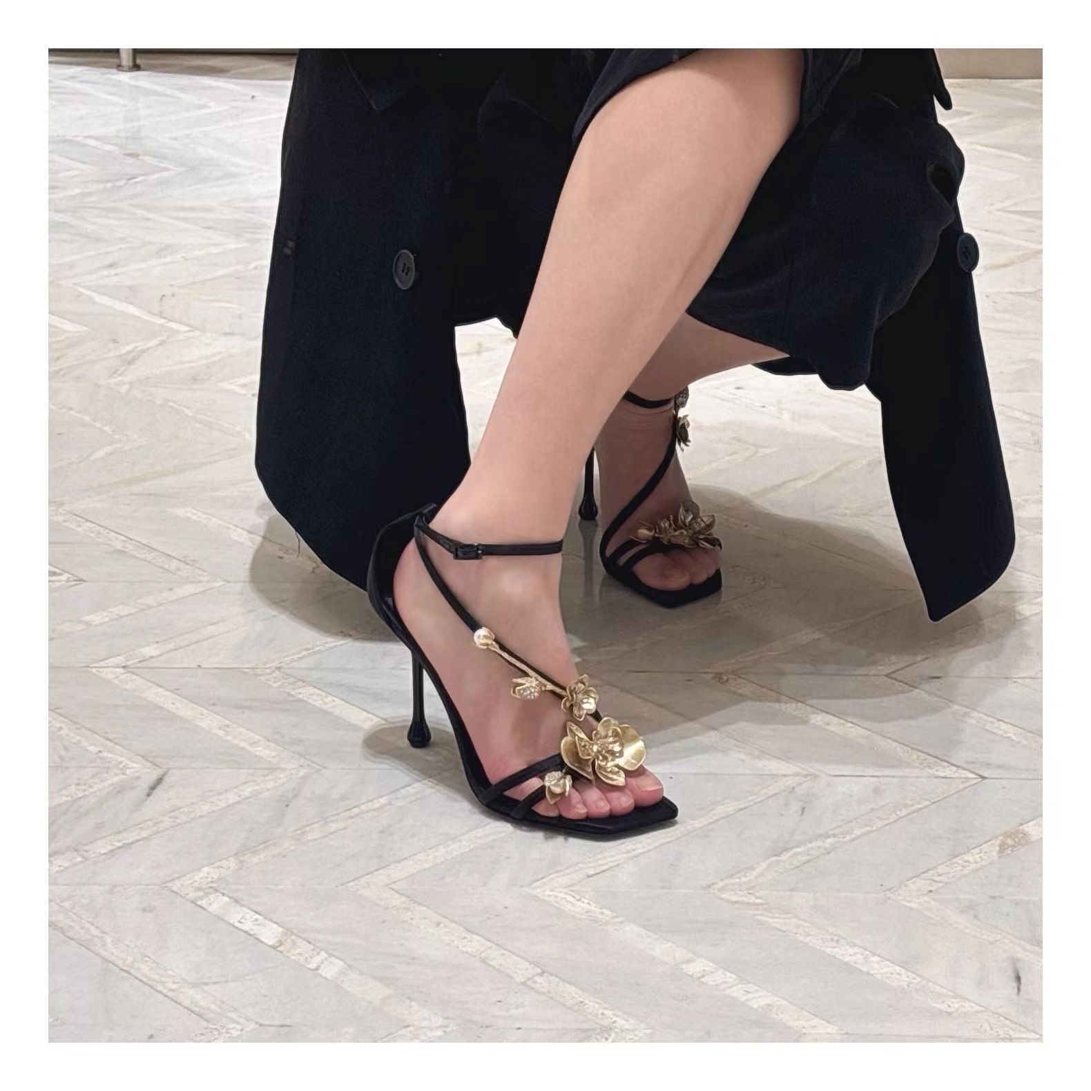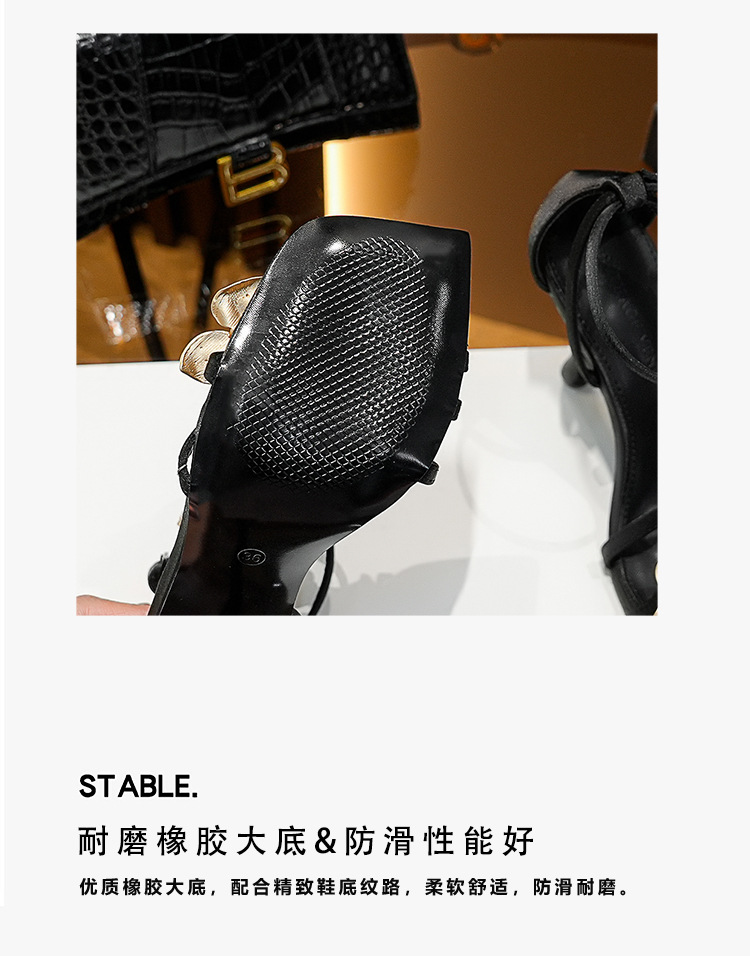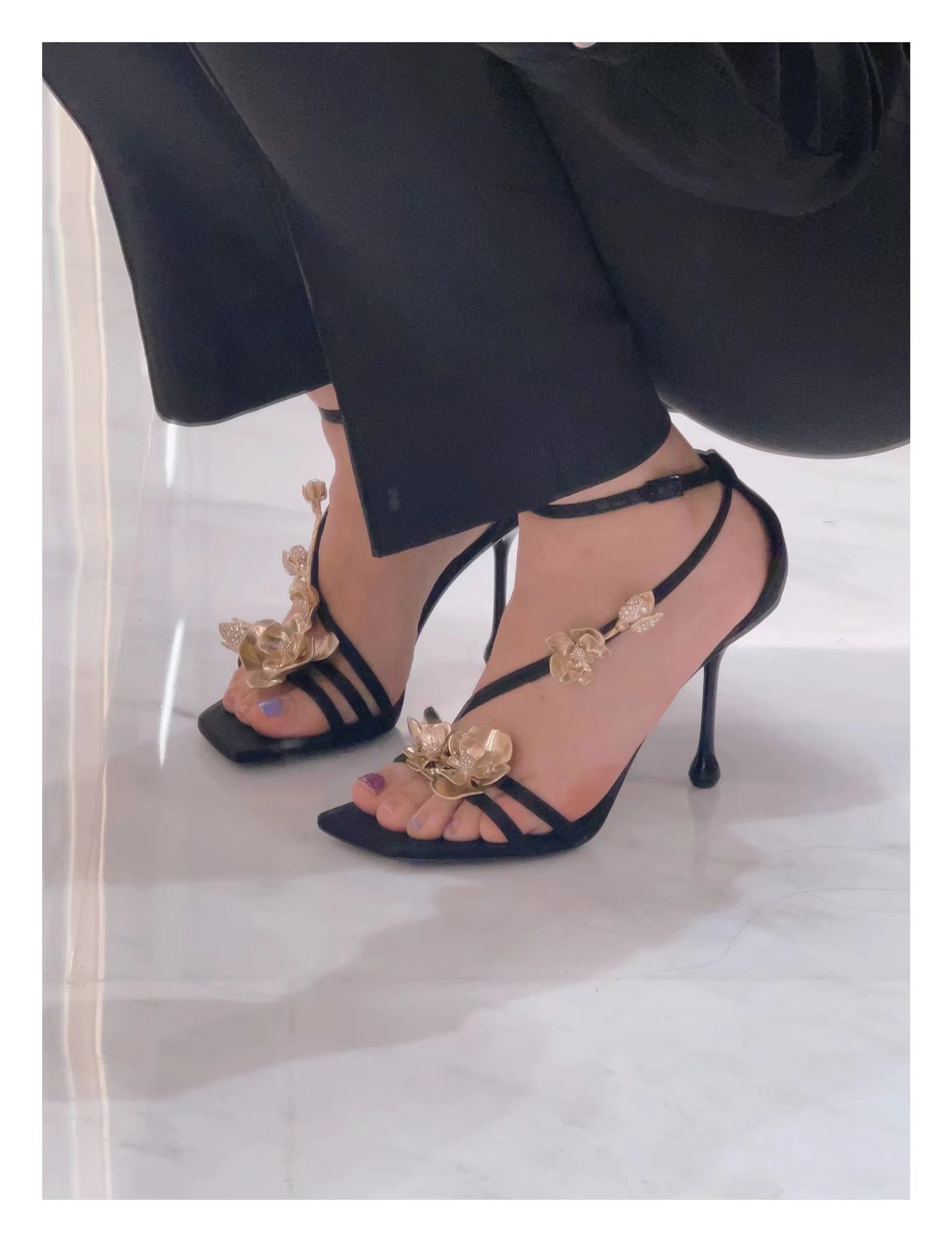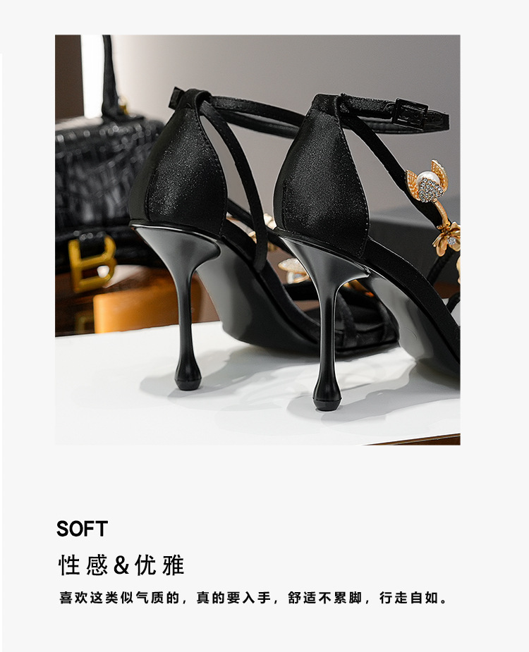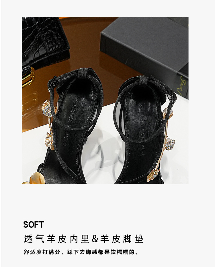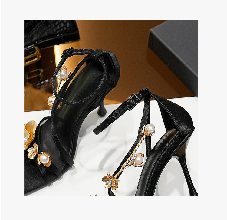 2025 새로운 여름 프랑스어 광장 발가락 골드 로즈 하이힐 여성 스틸레토 레이디 스타일 연회 한 단어 버클 샌들스토어 가기