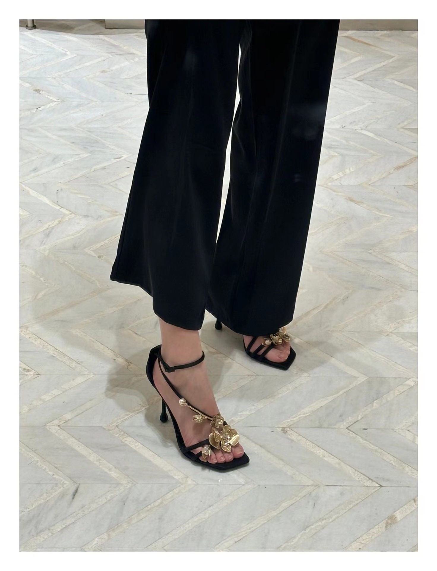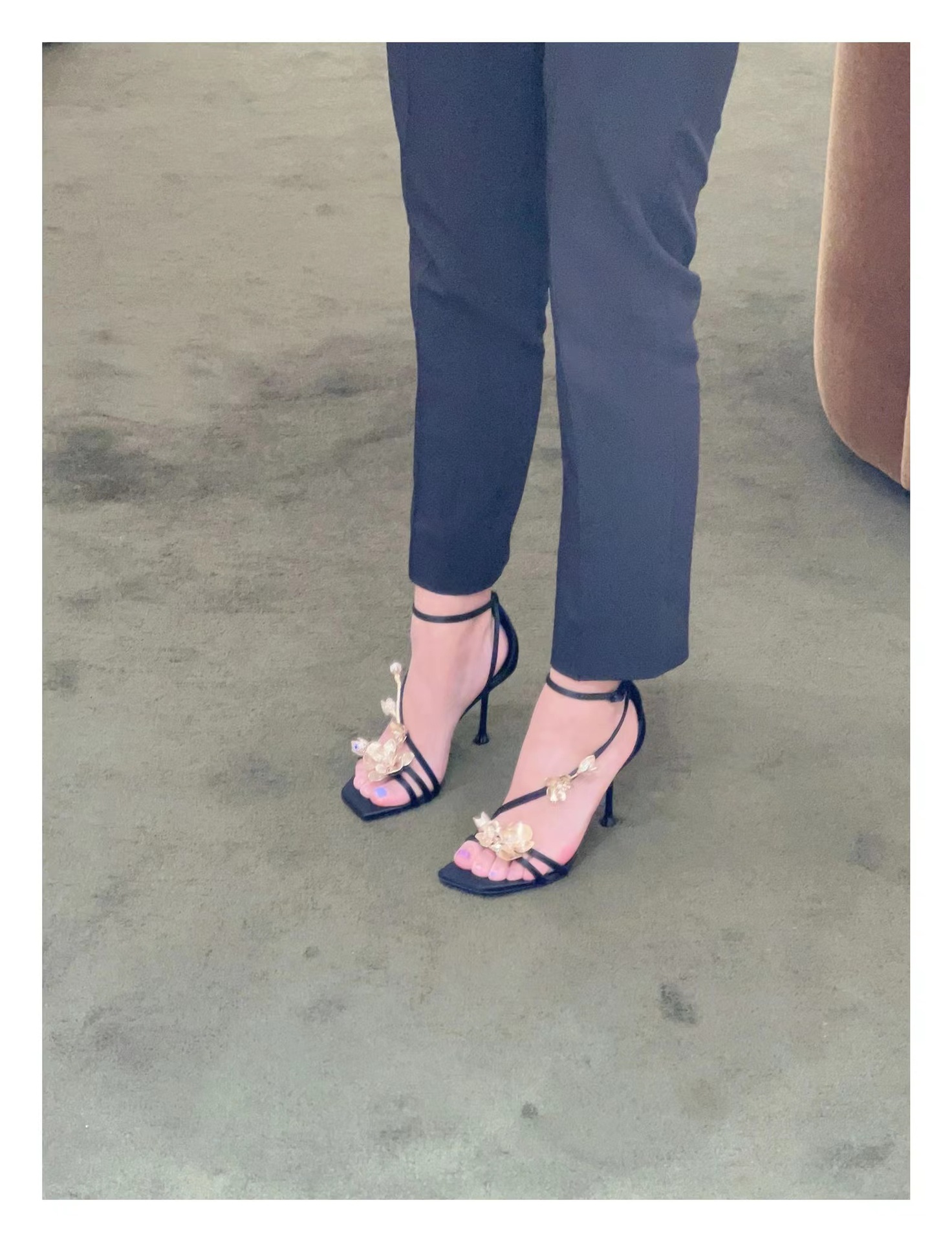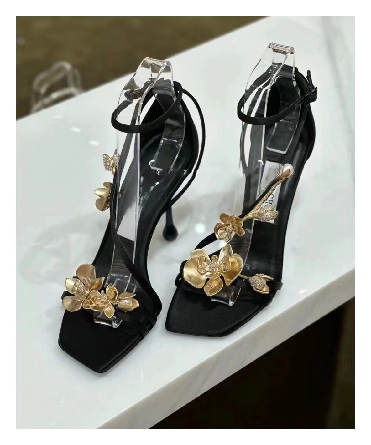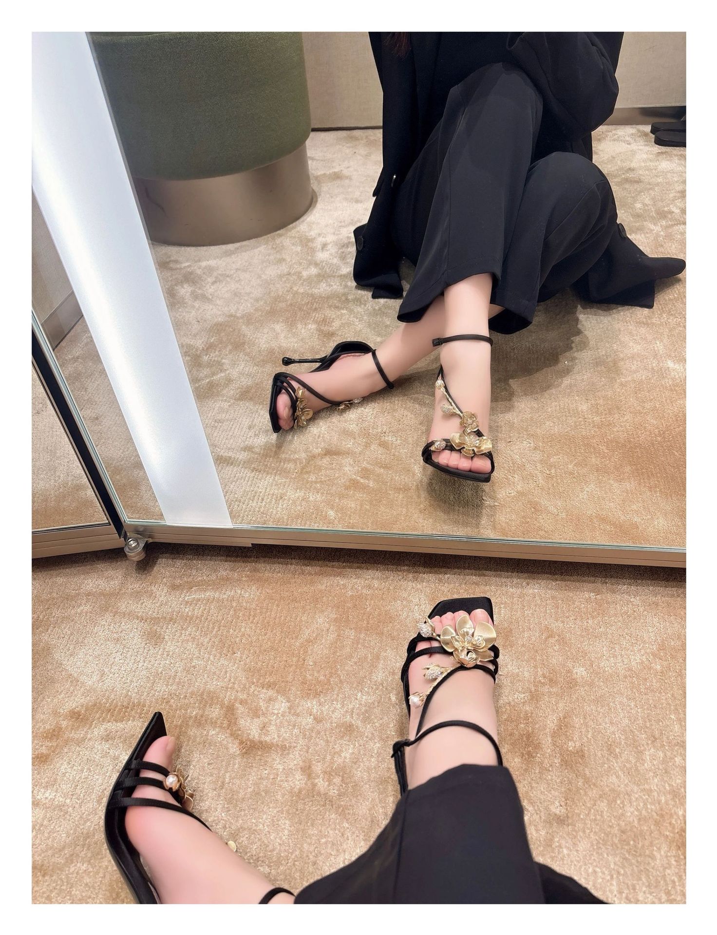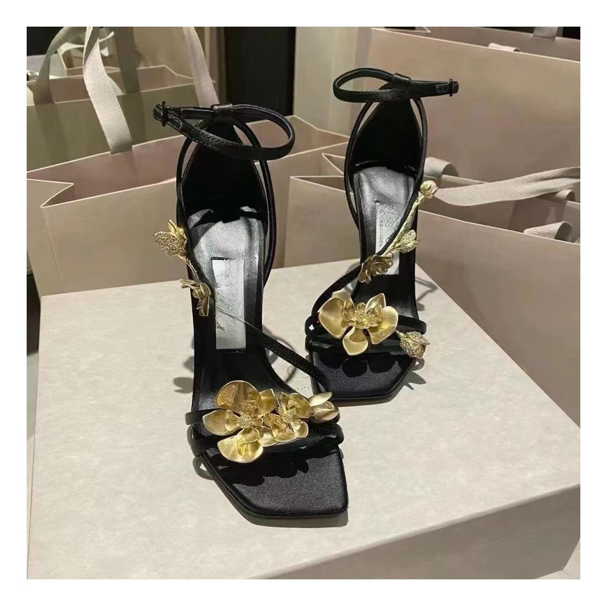 2025 새로운 여름 프랑스어 광장 발가락 골드 로즈 하이힐 여성 스틸레토 레이디 스타일 연회 한 단어 버클 샌들스토어 가기