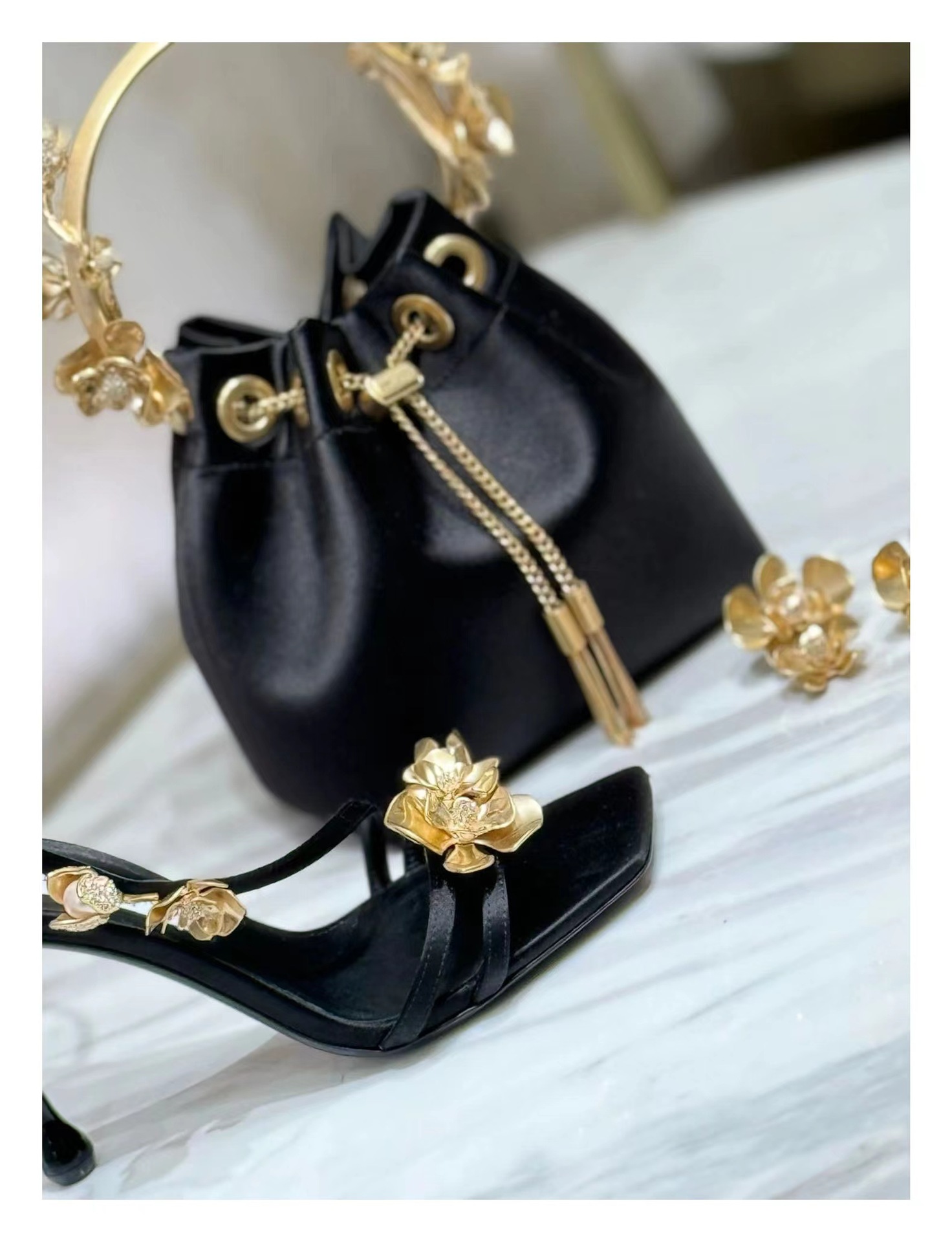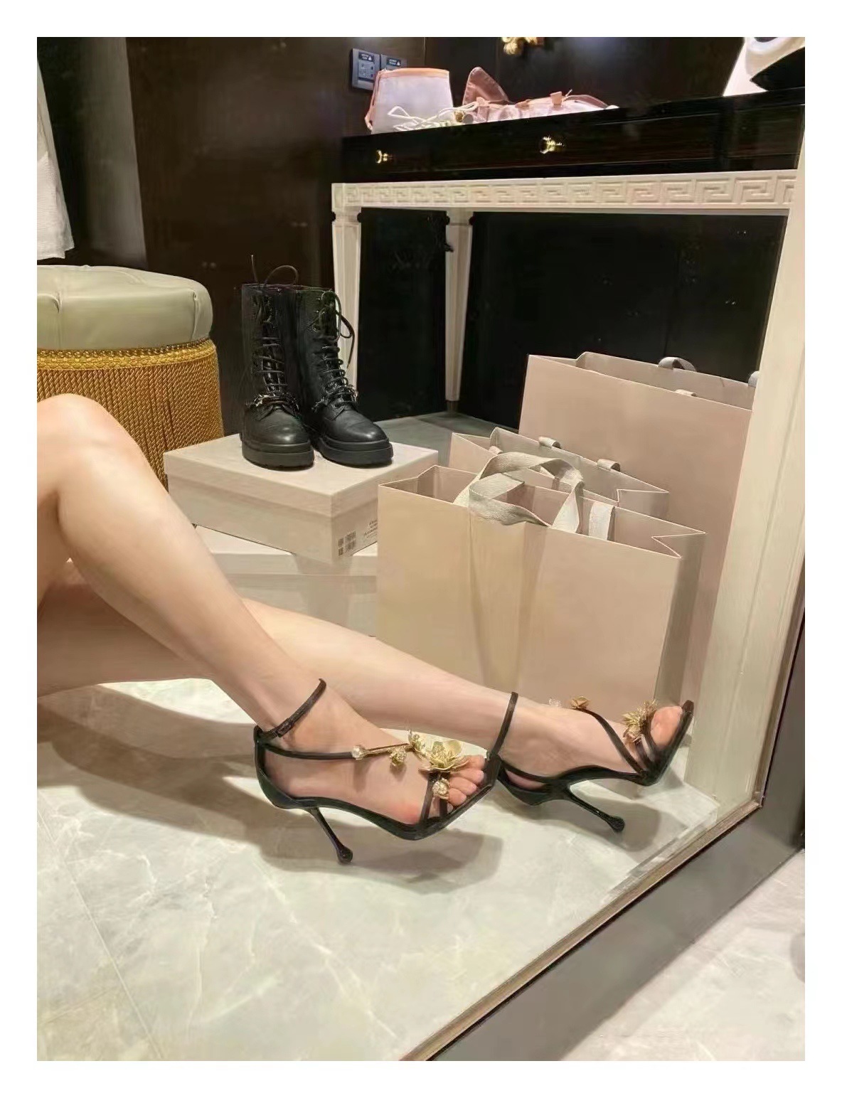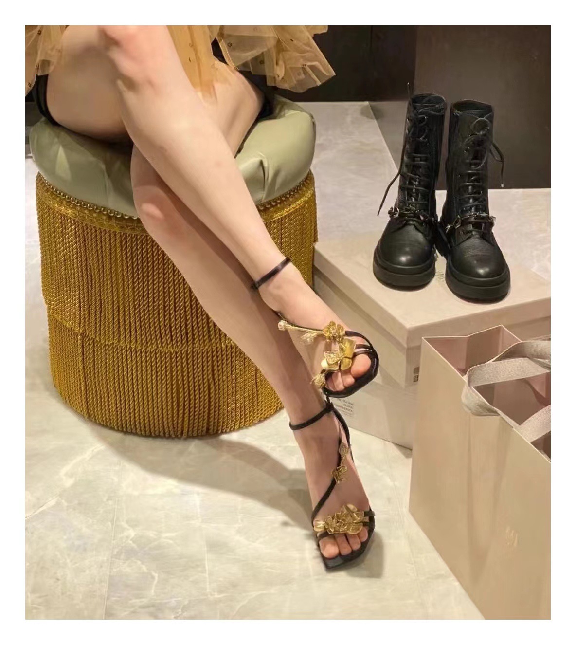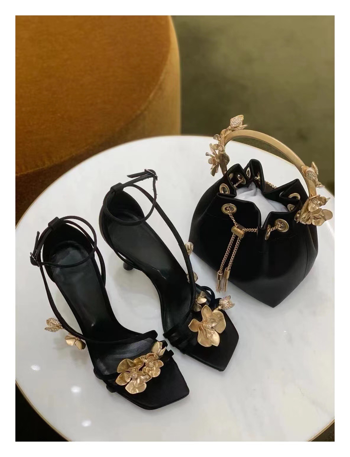 2025 새로운 여름 프랑스어 광장 발가락 골드 로즈 하이힐 여성 스틸레토 레이디 스타일 연회 한 단어 버클 샌들스토어 가기
