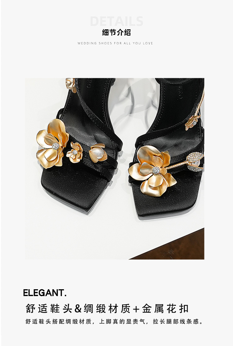 2025 새로운 여름 프랑스어 광장 발가락 골드 로즈 하이힐 여성 스틸레토 레이디 스타일 연회 한 단어 버클 샌들