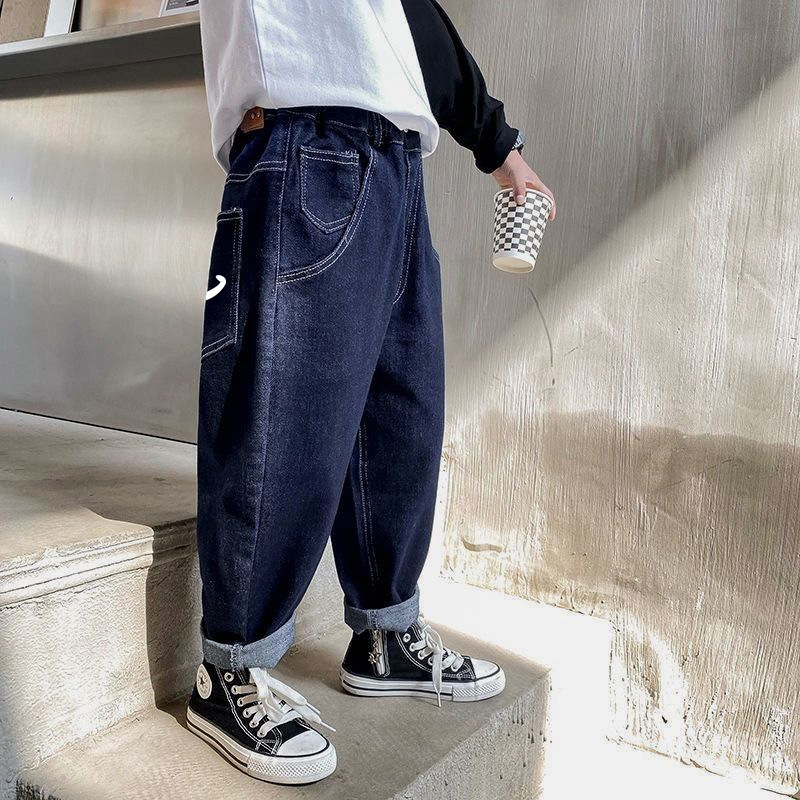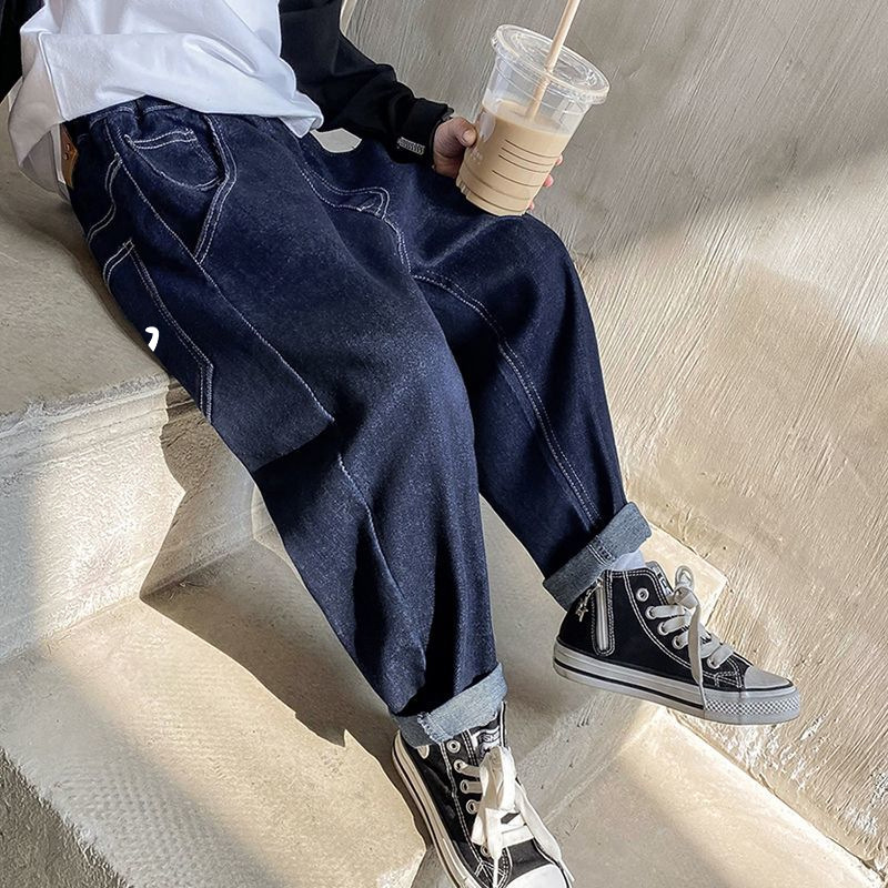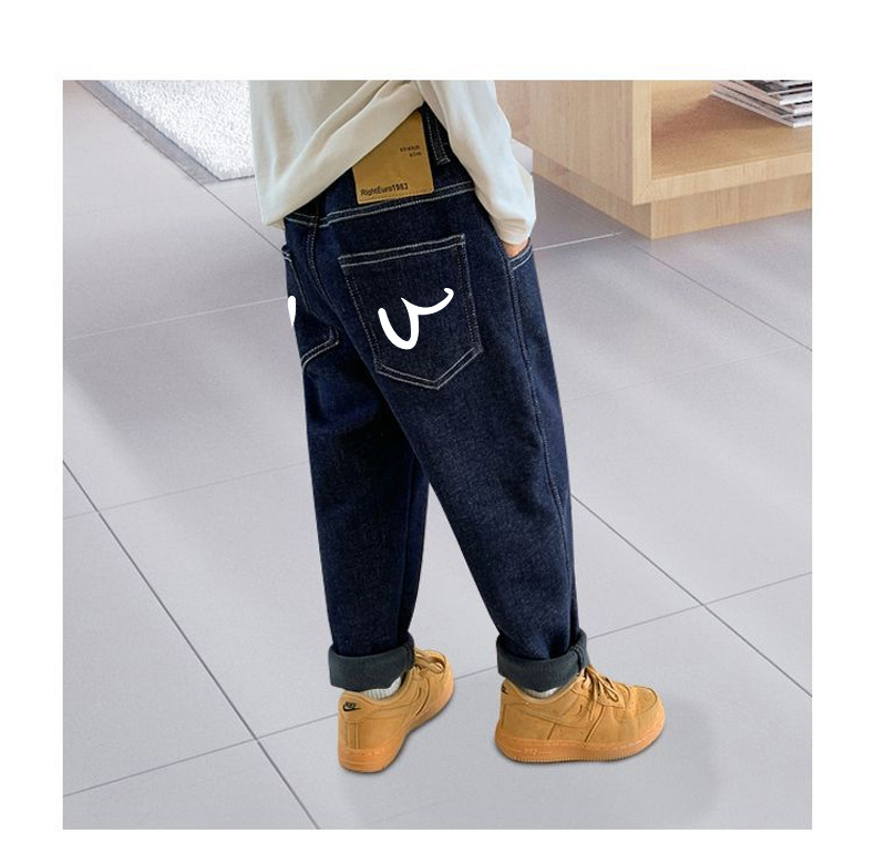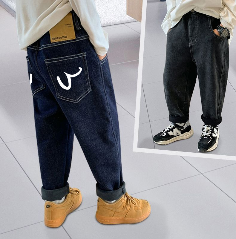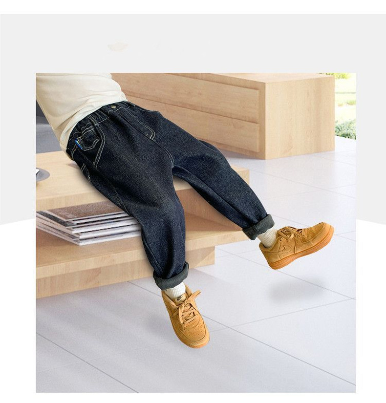 남아 기모 바지 2023 새로운 겨울 착용 소년 두꺼운 원피스 양털 청바지 어린이 따뜻한 바지 어린이 겨울 착용