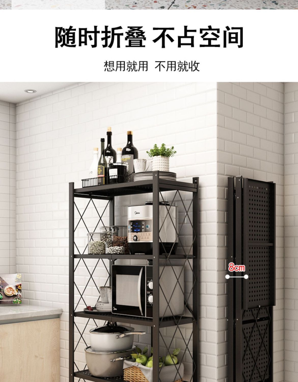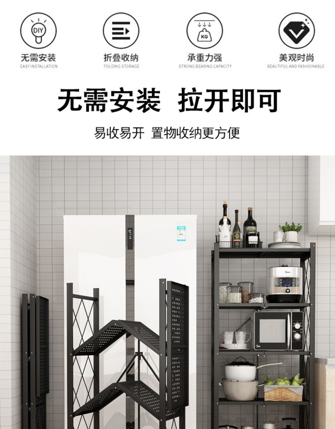 주방 수납 선반 접이식 다기능 주방 전자레인지 계층형 수납 선반 가정용 주방 수납 선반스토어 가기