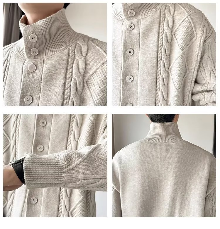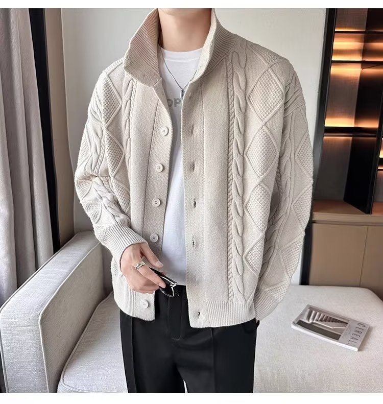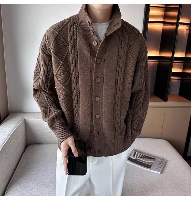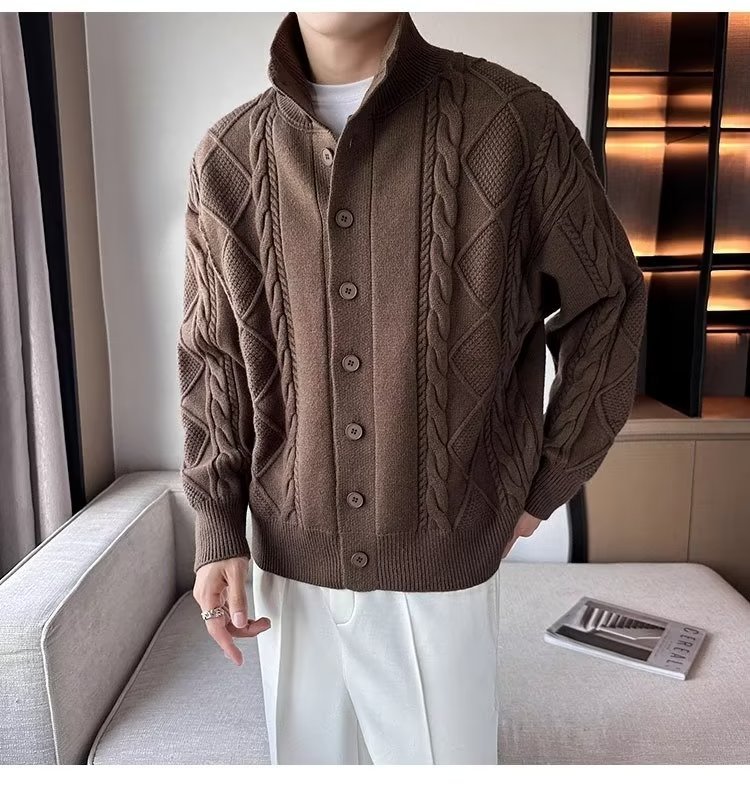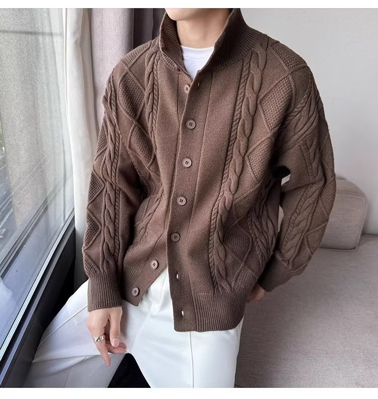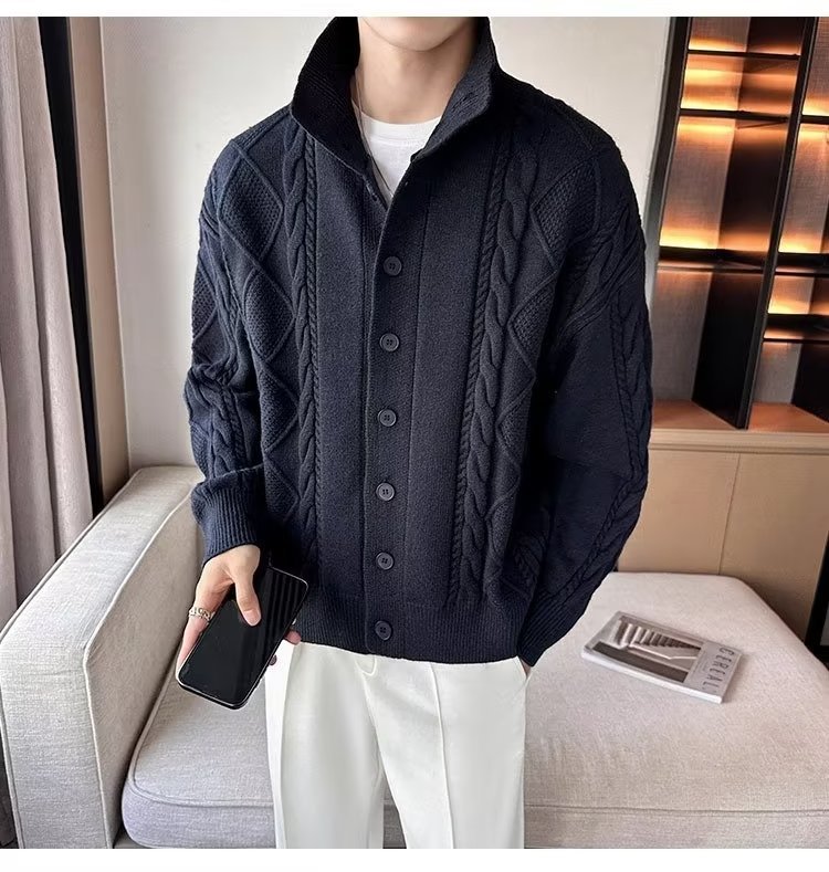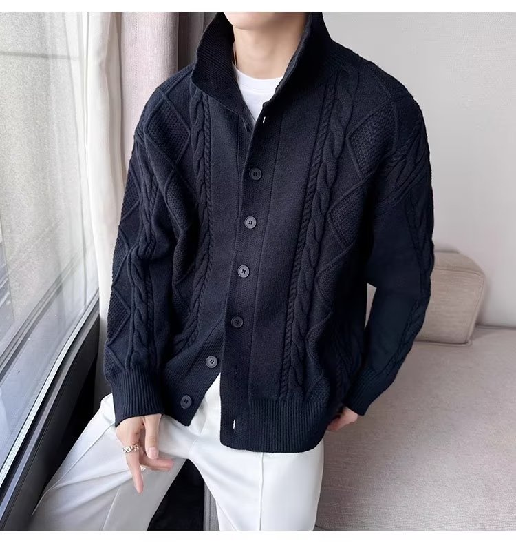 2023 가을과 겨울 새로운 트위스트 니트 가디건 남성용 한국 스타일 느슨한 모든 매치 단색 스웨터 두꺼운 코트 탑스토어 가기