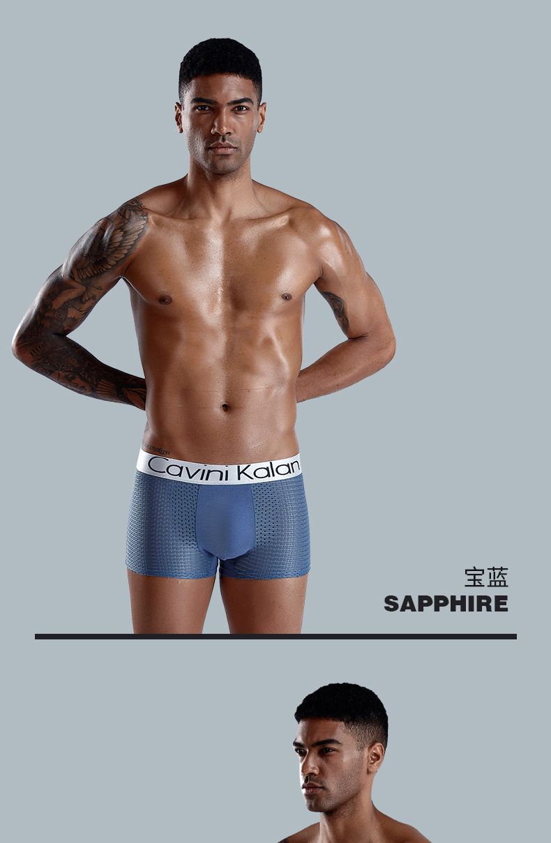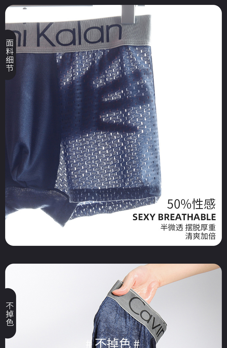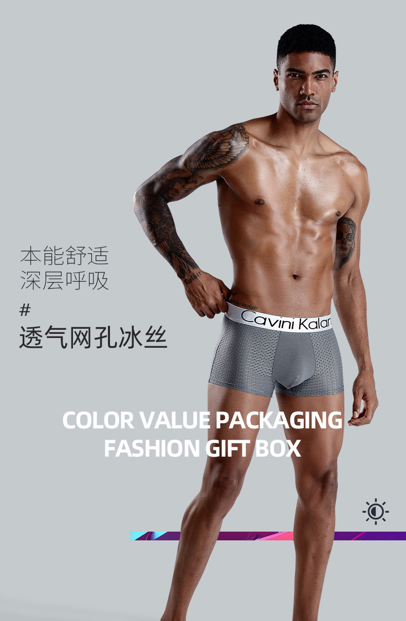 새로운 남자의 복서 아이스 실크 선물 상자 속옷 통기성 메쉬 타이드 브랜드 플러스 사이즈 복서 바지 바지 해외 무역 도매