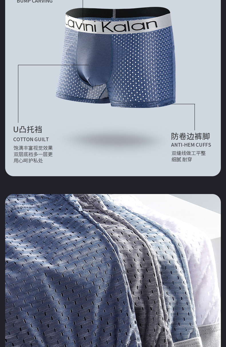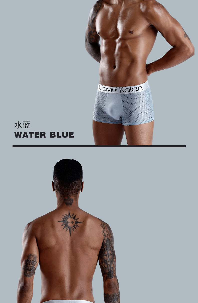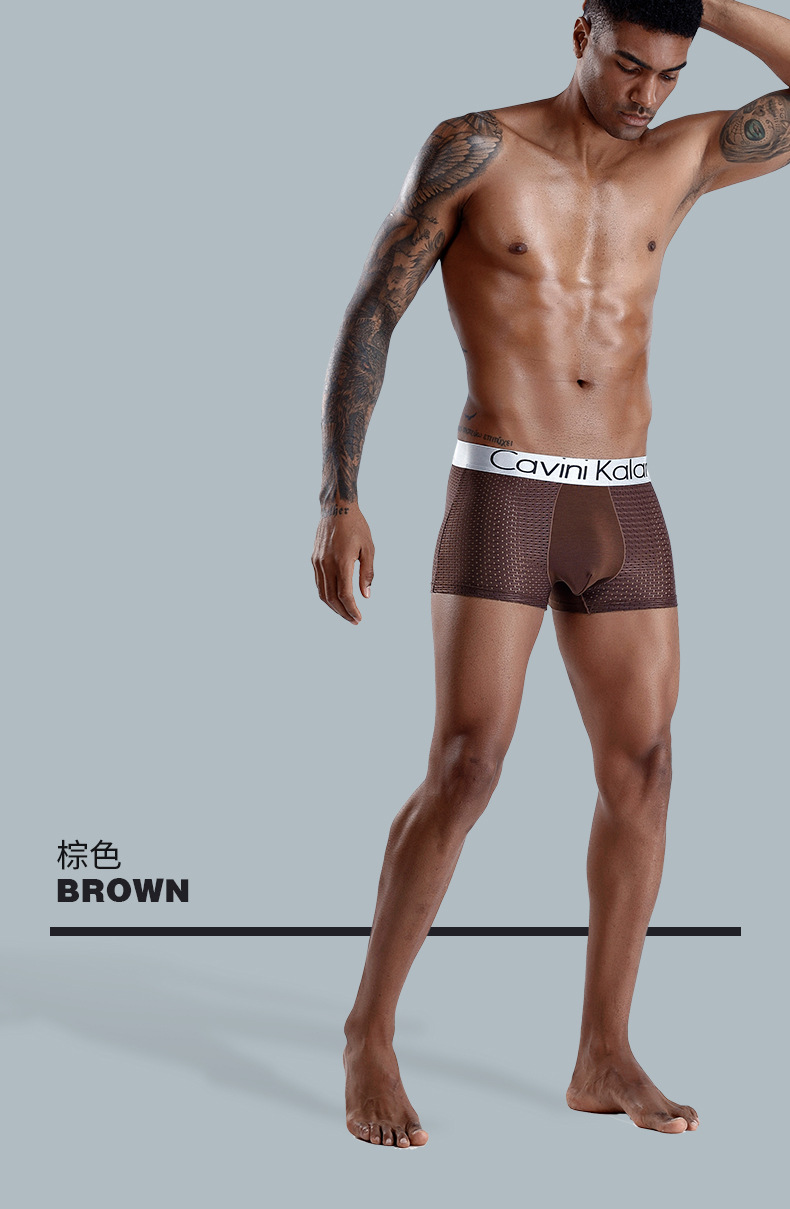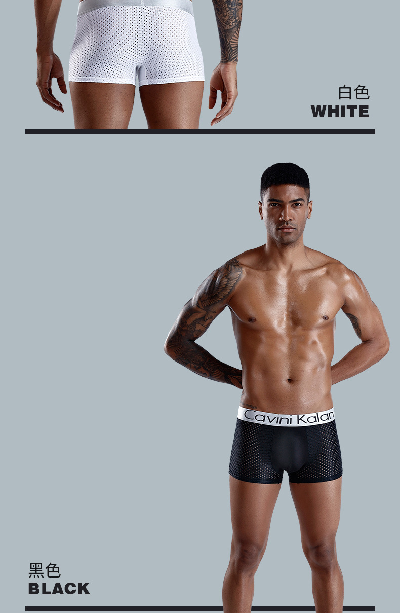 새로운 남자의 복서 아이스 실크 선물 상자 속옷 통기성 메쉬 타이드 브랜드 플러스 사이즈 복서 바지 바지 해외 무역 도매