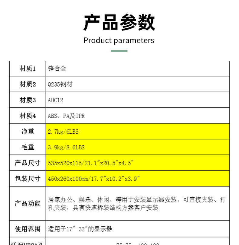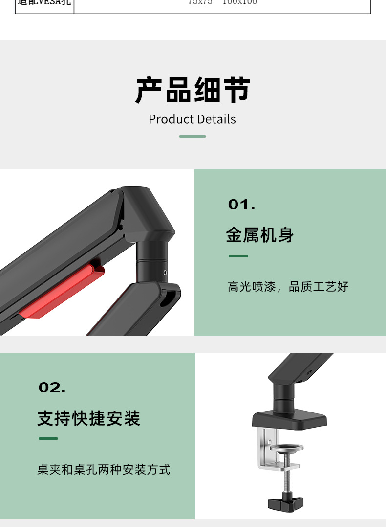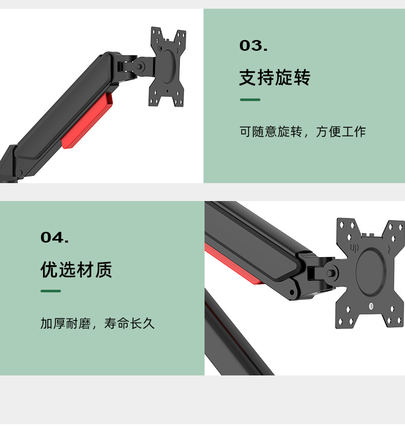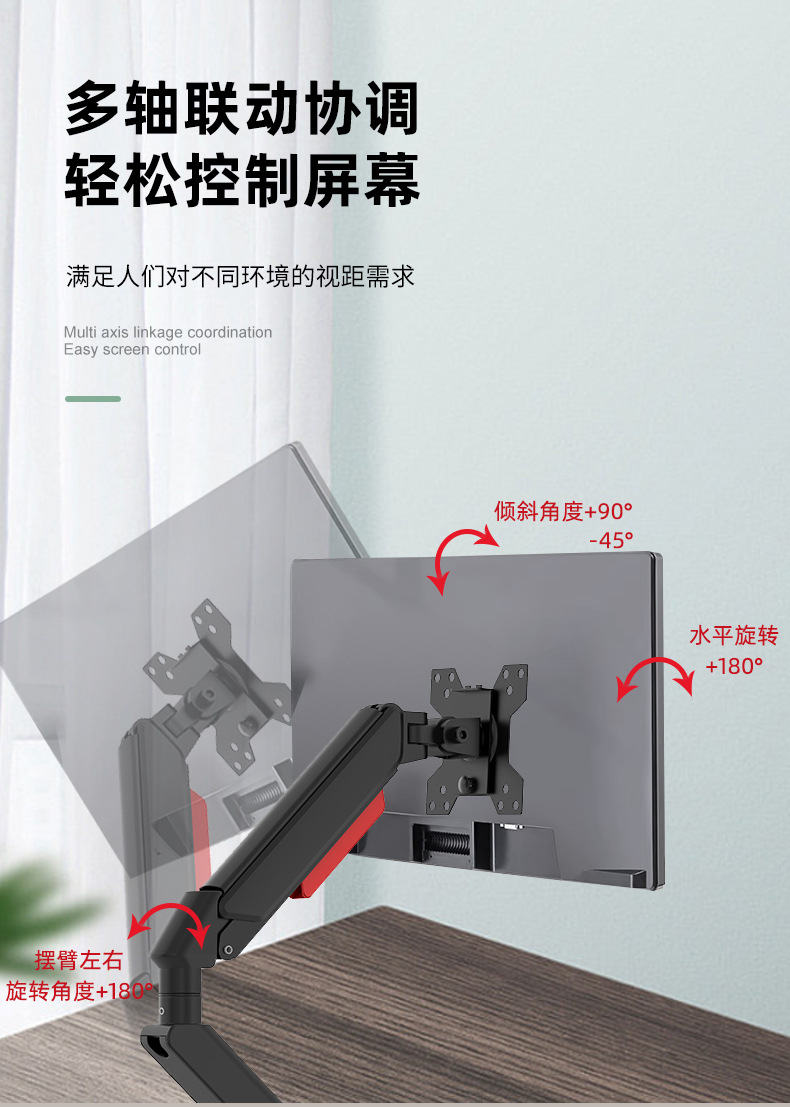 공장 맞춤형 17-32 인치 아연 합금 싱글 암 디스플레이 브래킷 리프팅 로터리 데스크탑 컴퓨터 브래킷