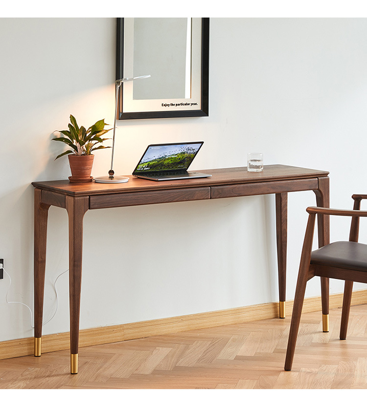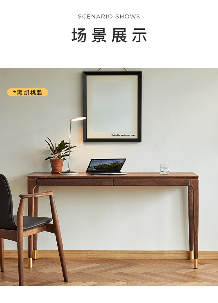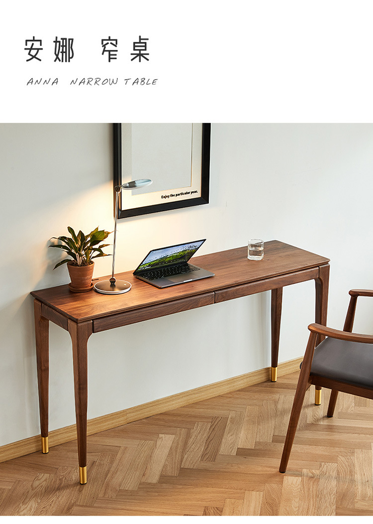 북유럽 블랙 월넛 나무 단단한 나무 책상 북유럽 작문 책상 화장대 컴퓨터 좁은 책상 체리 나무 컴퓨터 책상