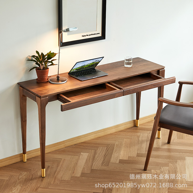 북유럽 블랙 월넛 나무 단단한 나무 책상 북유럽 작문 책상 화장대 컴퓨터 좁은 책상 체리 나무 컴퓨터 책상스토어 가기