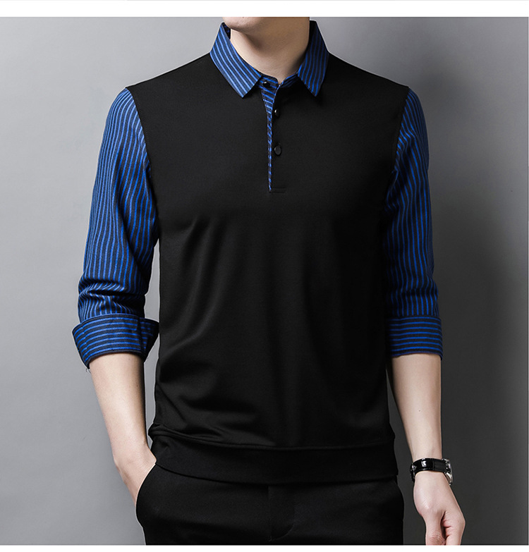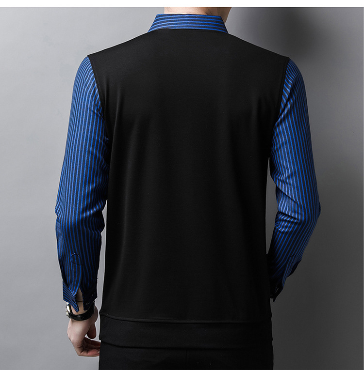 남자의 기모 비즈니스 셔츠 칼라 가짜 투피스 젊고 중년의 남성 셔츠 칼라 스트라이프 베이스 셔츠 적합한 옷깃 스웨터