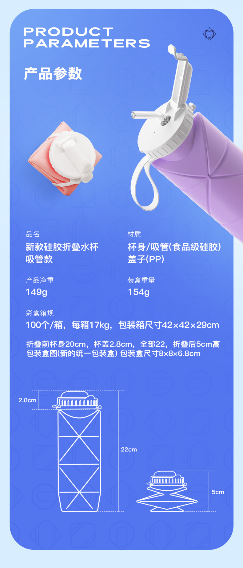 产品尺寸:高度22.5cm,杯身半径3.5cm,杯口半径2.4cm 压缩后高度:6.5cm