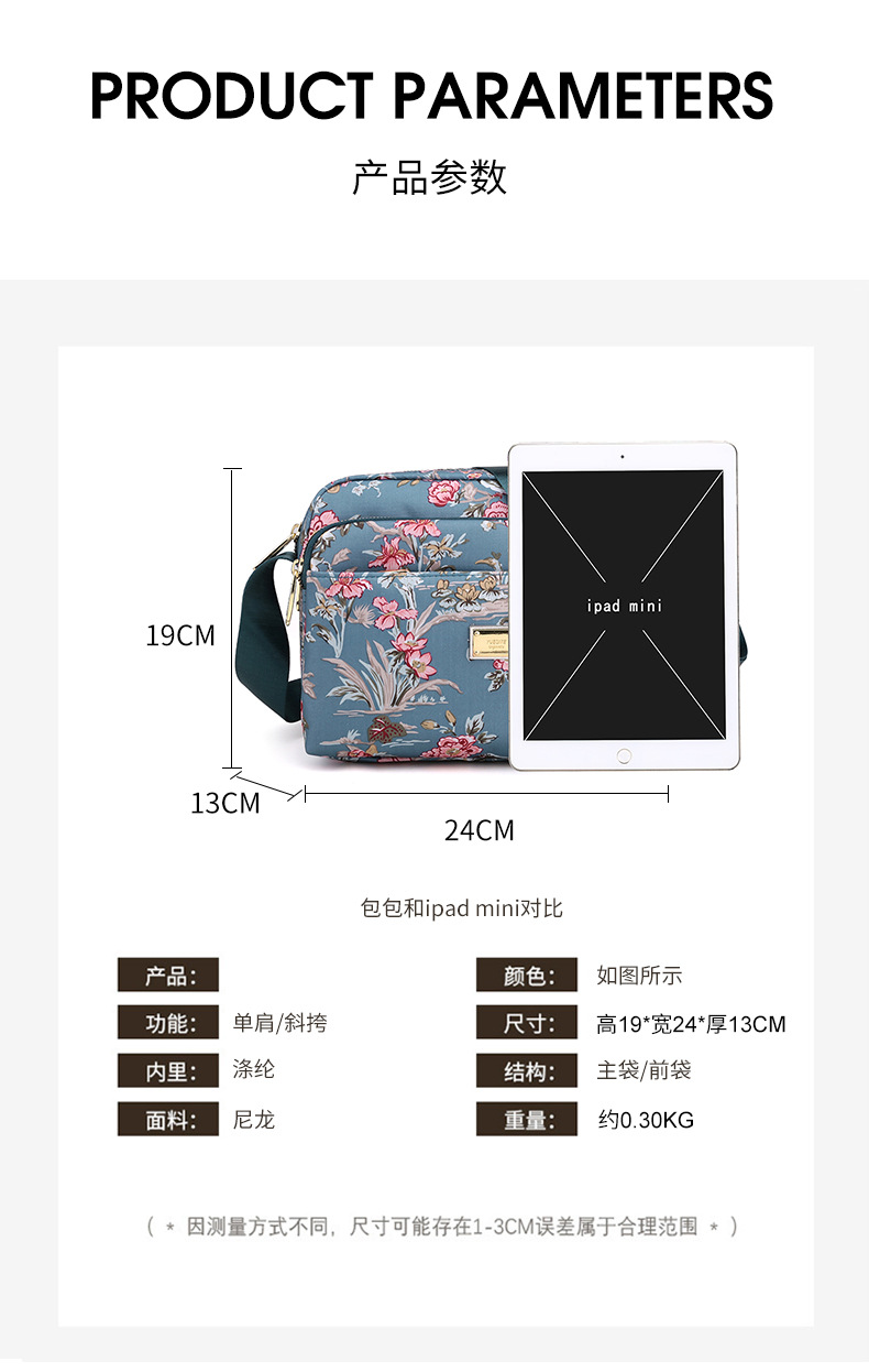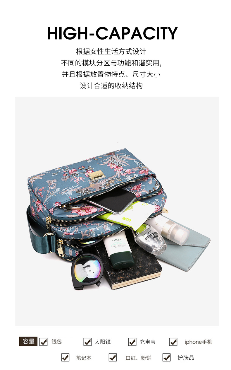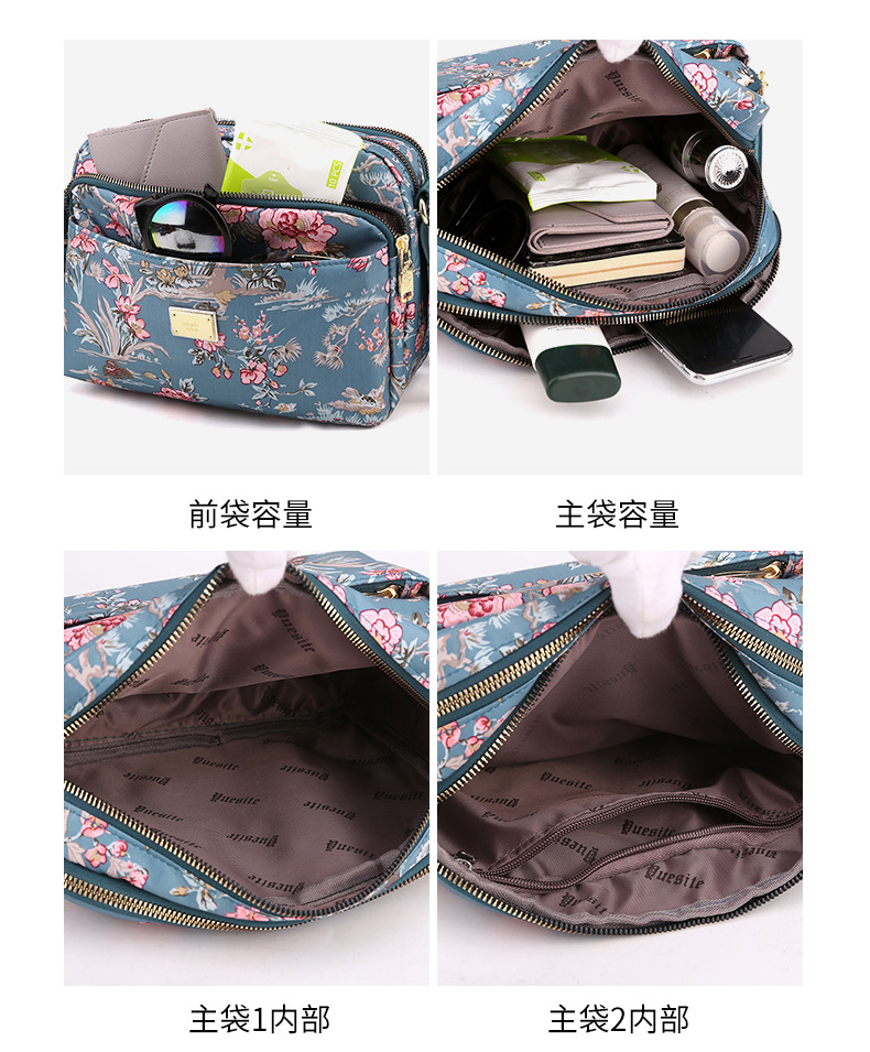 도매 새로운 나일론 중년 및 노인 여성 가방 인쇄 다층 어머니 메신저 가방 대용량 캐주얼 간단한 작은 사각형 가방