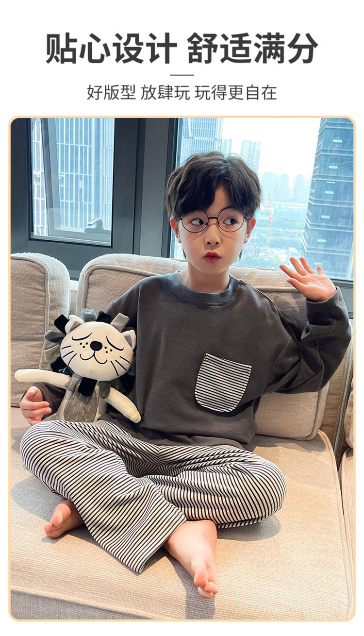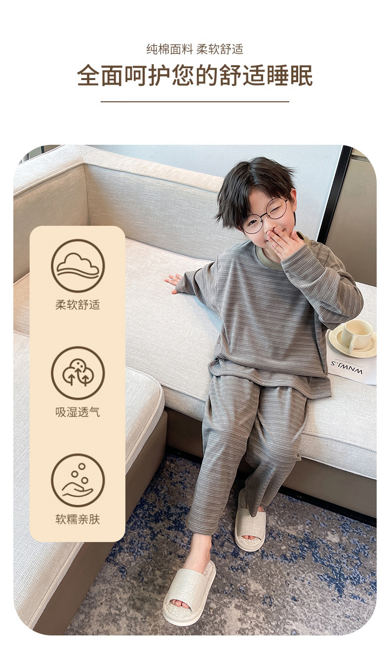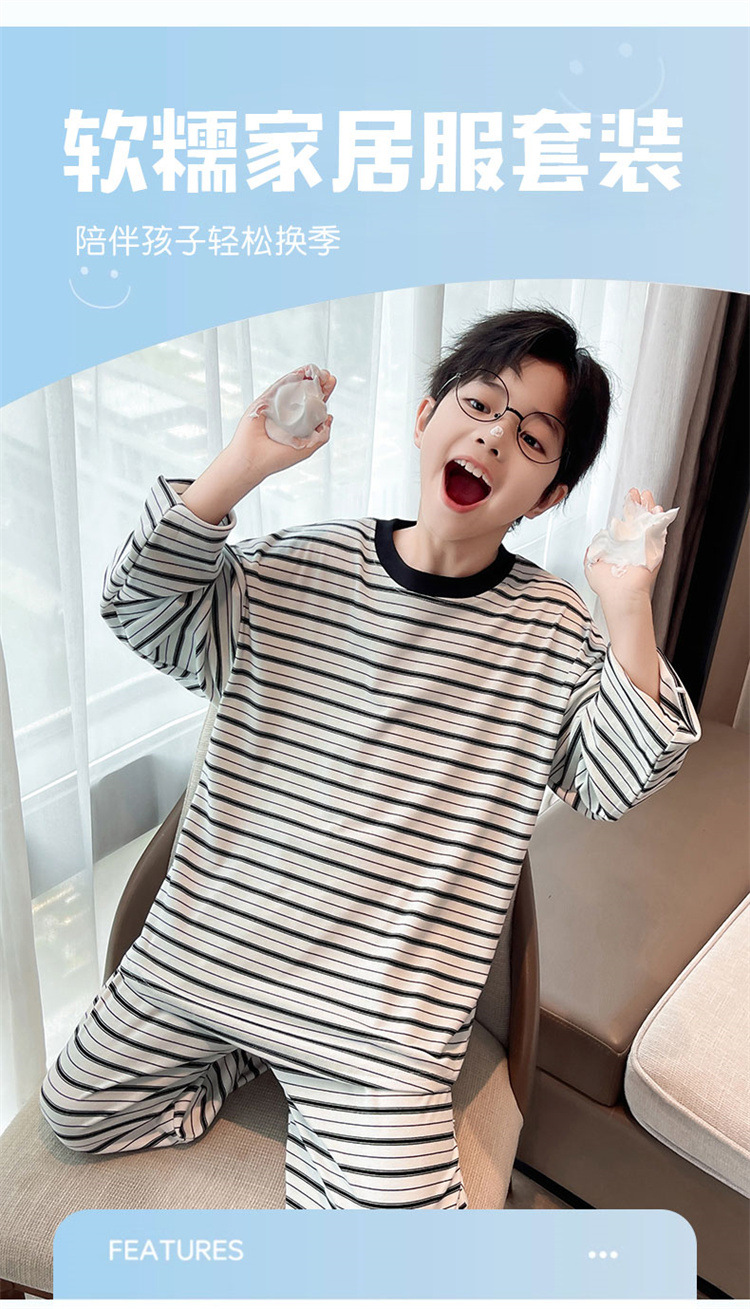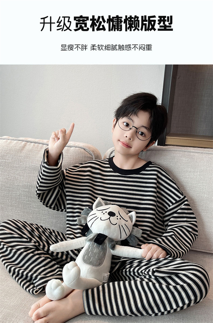 남아 가을 순면 잠옷 세트 2025 신상 따뜻한 아동복 겨울 청소년 가을 겨울 홈웨어스토어 가기