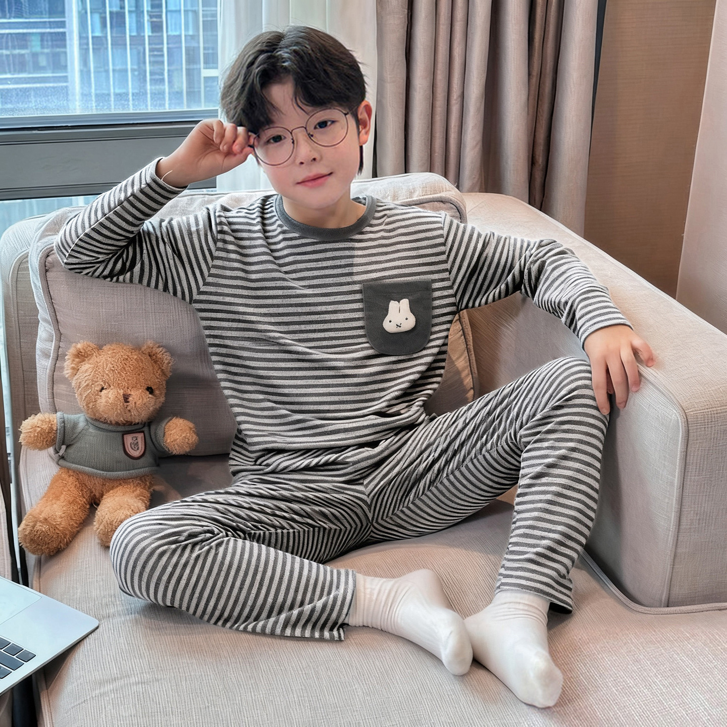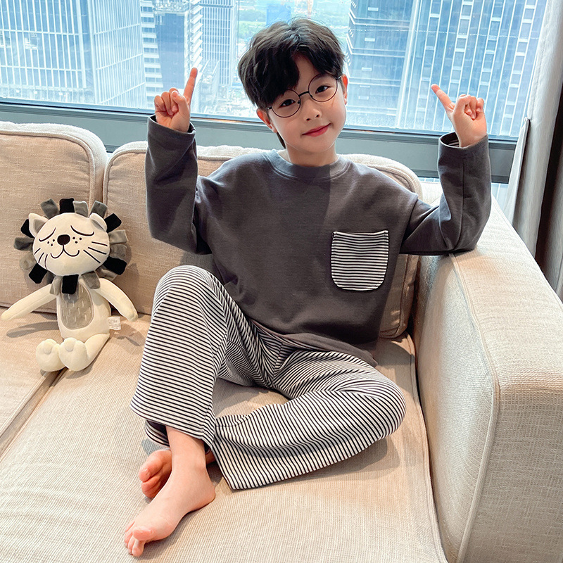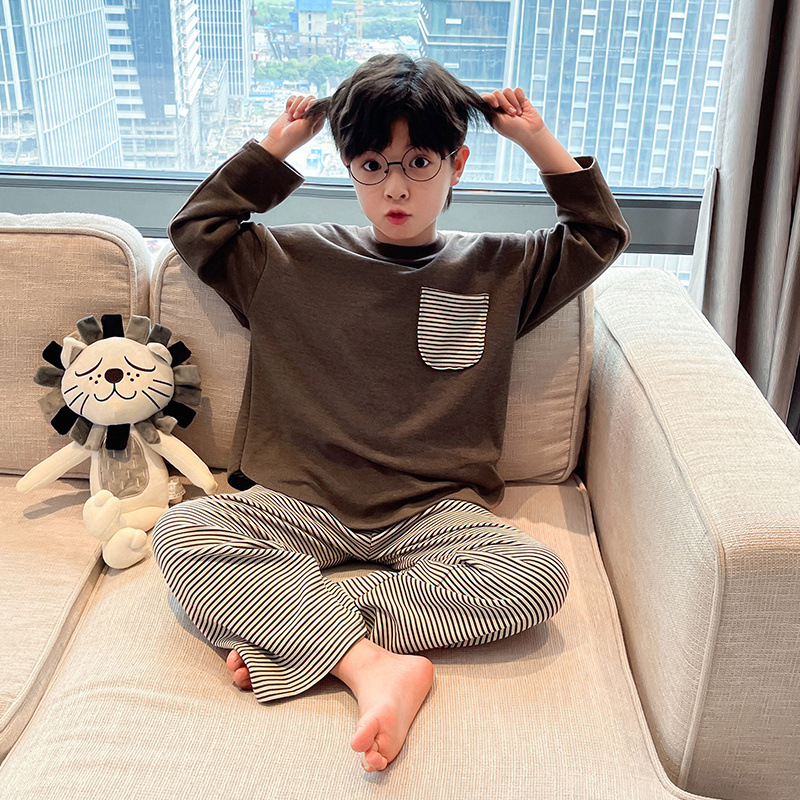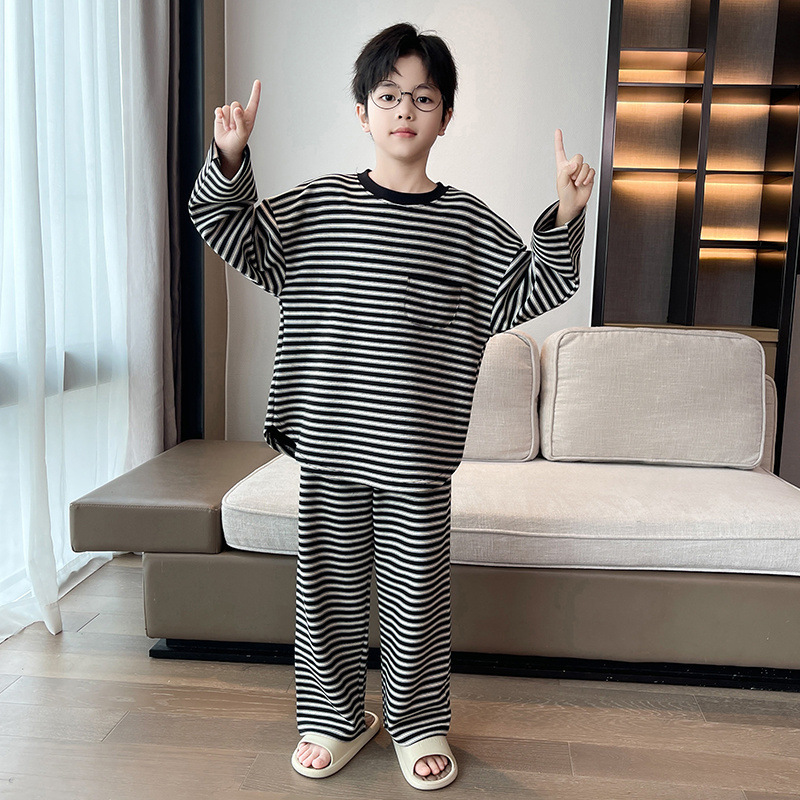 남아 가을 순면 잠옷 세트 2025 신상 따뜻한 아동복 겨울 청소년 가을 겨울 홈웨어