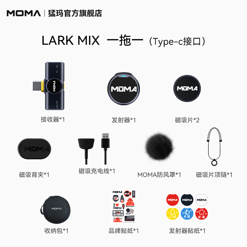 맘마 라크 MIX 미니 무선 칼라 클립 마이크 라디오 녹음 라이브 방송 장비 휴대 전화 소음 감소 버튼