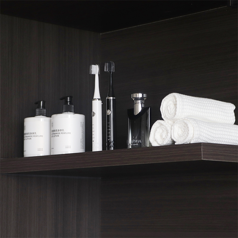 【욕실장 및 욕실용품】모델룸 욕실 전시실 칫솔, 페이스크림, 푸시형 세탁세제병, 수건 장식