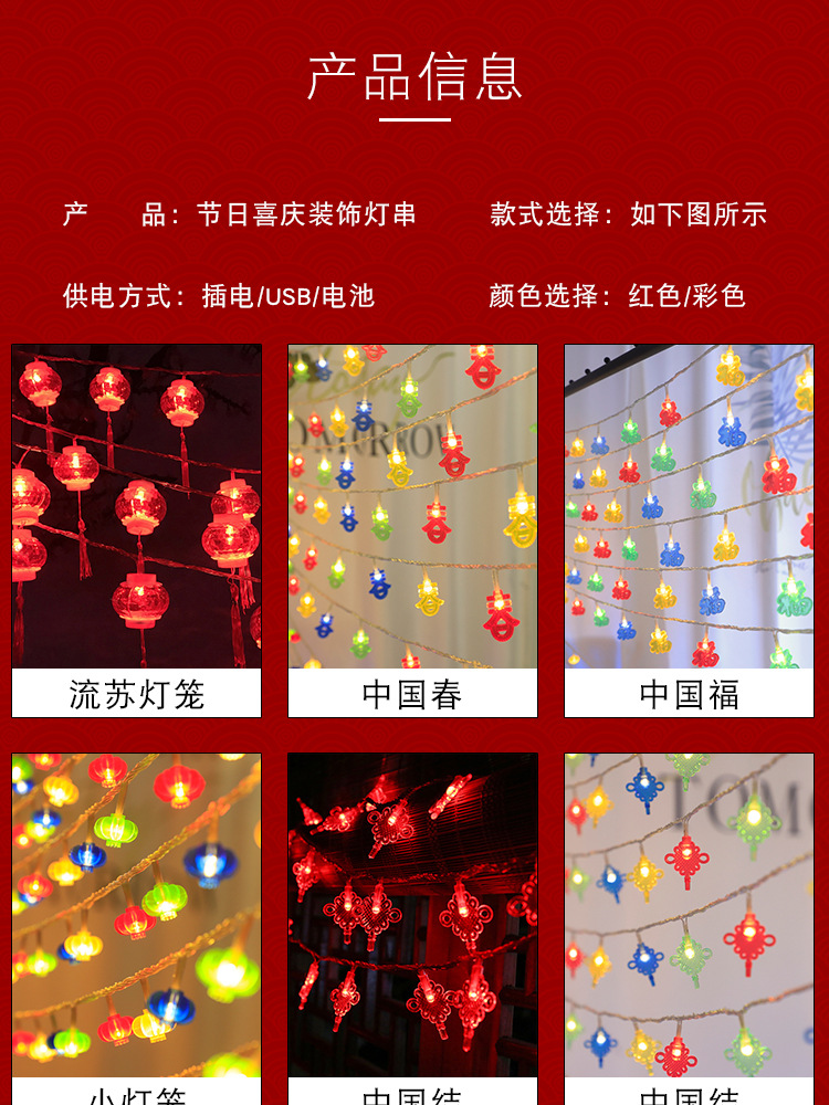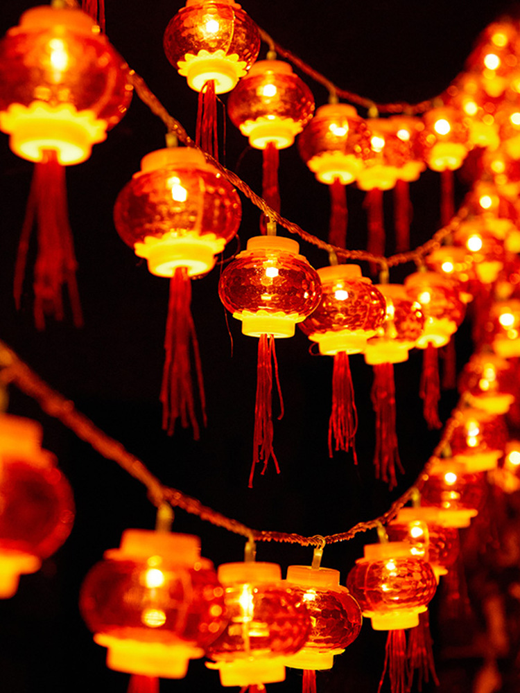 새해 장식 봄 축제 작은 조명 깜박임 조명 스트링 조명 교수형 조명 발광 술 레드 랜턴 교수형 장식 가정 새해 도매