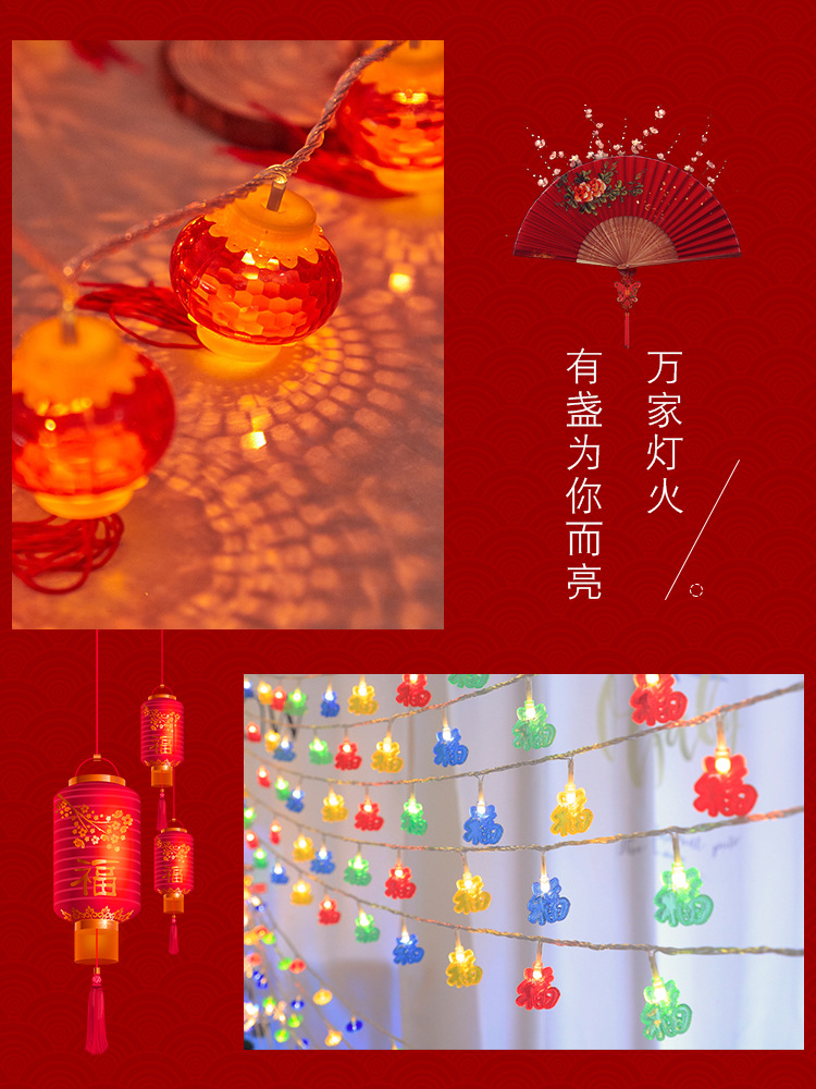 새해 장식 봄 축제 작은 조명 깜박임 조명 스트링 조명 교수형 조명 발광 술 레드 랜턴 교수형 장식 가정 새해 도매스토어 가기