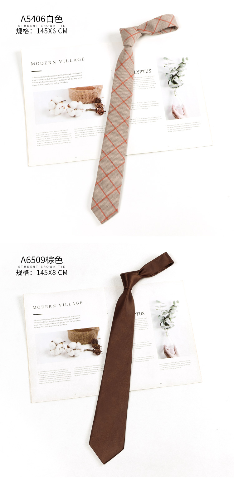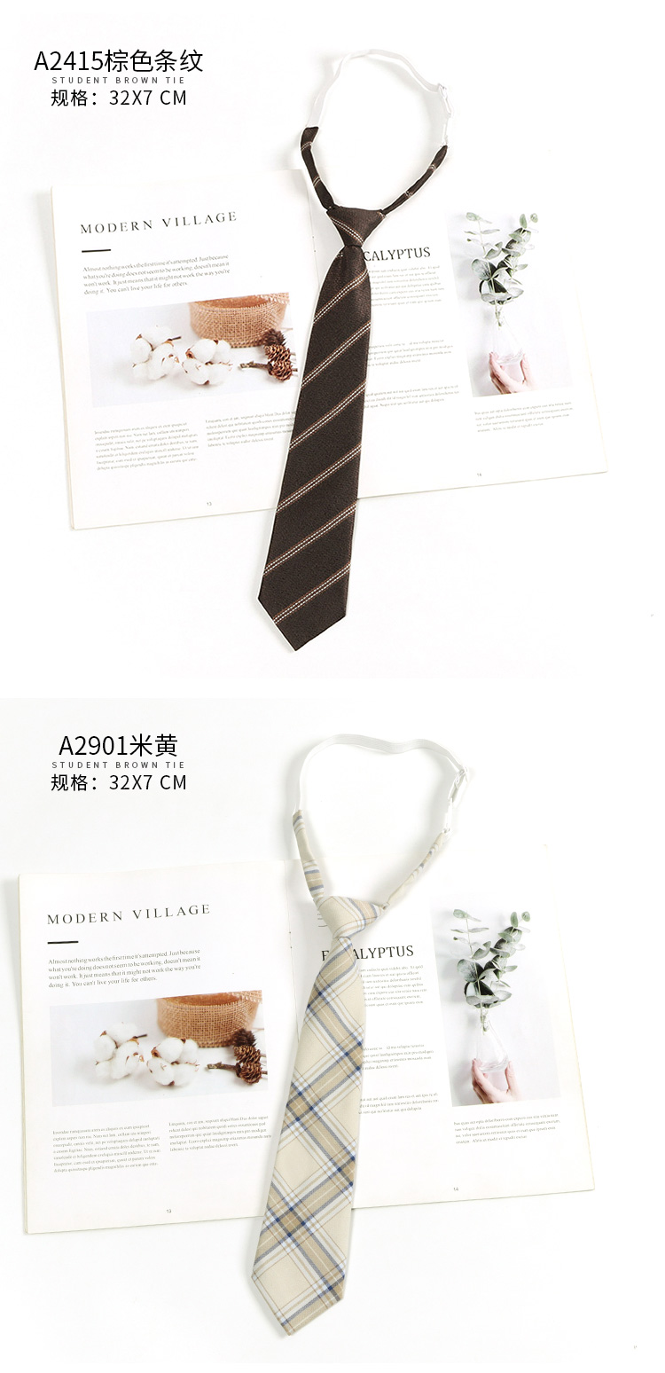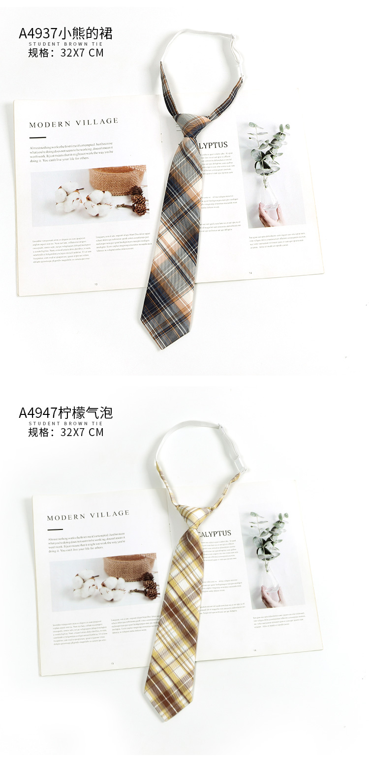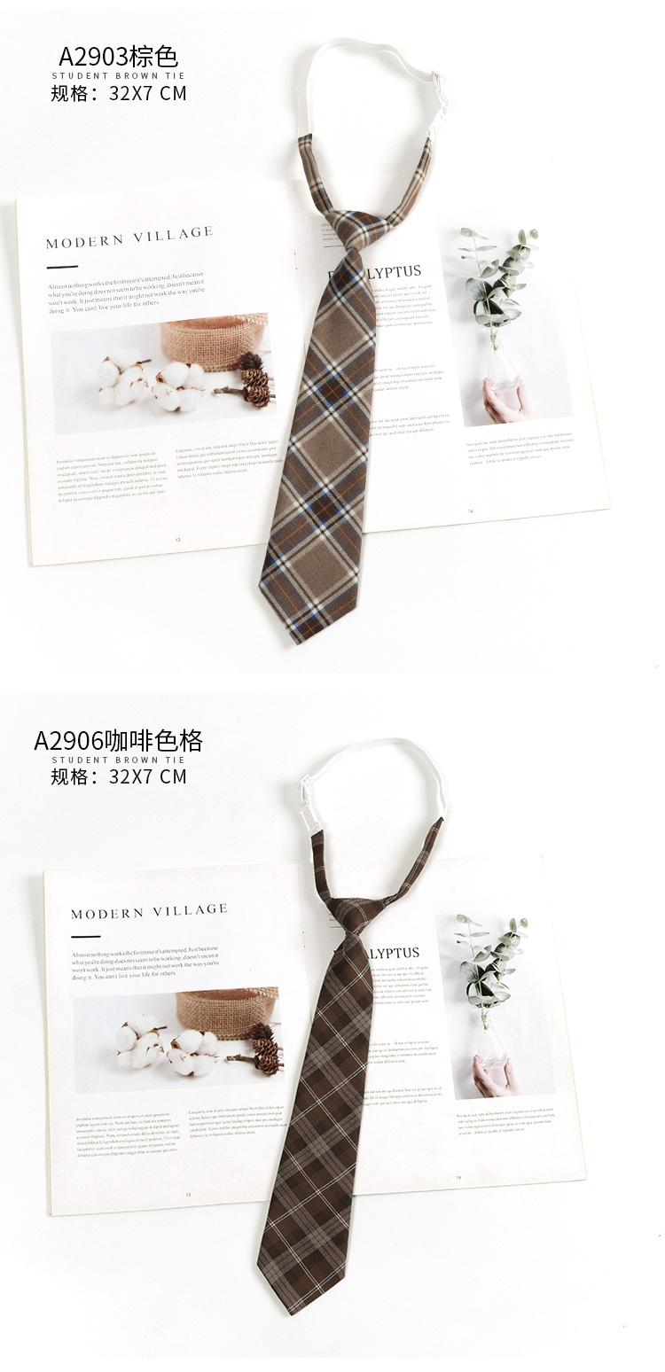 다크 브라운 레트로 격자 무늬 스트라이프 게으른 타격 일본 다크 브라운 넥타이 여성 활 넥타이 아카데믹 스타일 남성 패션스토어 가기