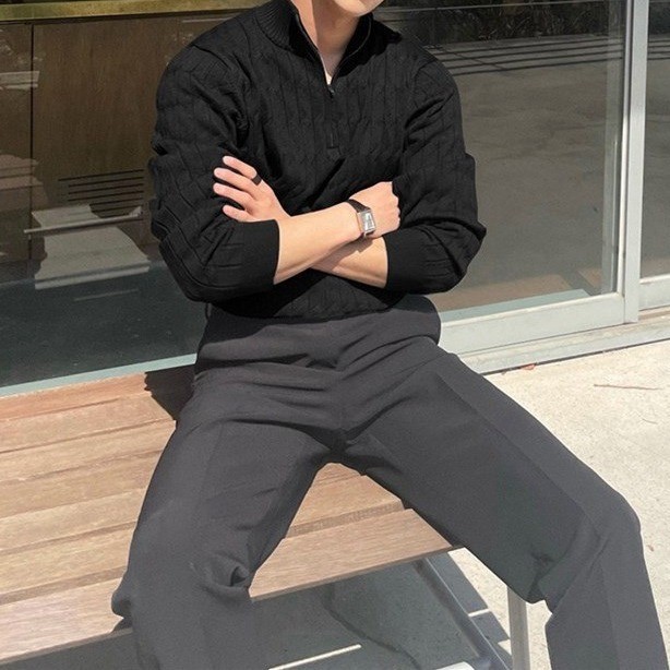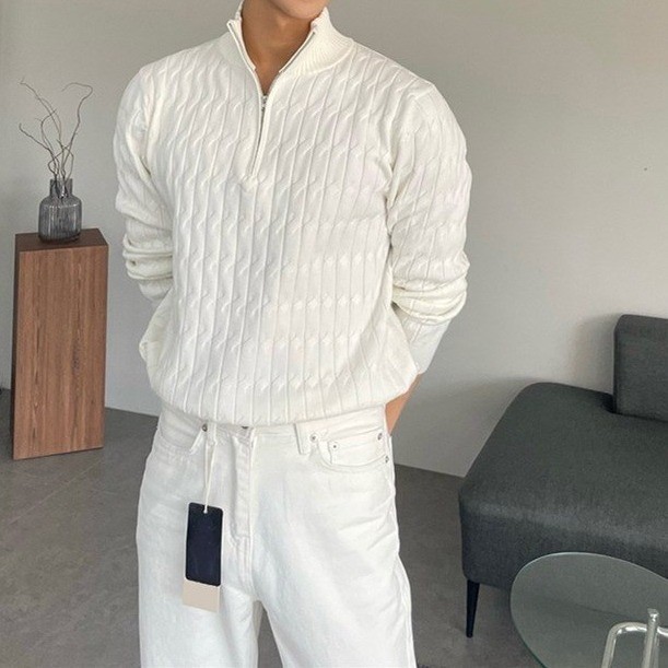 가을과 겨울 하프 터틀넥 지퍼 스웨터 남성용 느슨한 대마 패턴 니트 스웨터 재킷 트렌디 모든 매치 캐주얼 탑스토어 가기