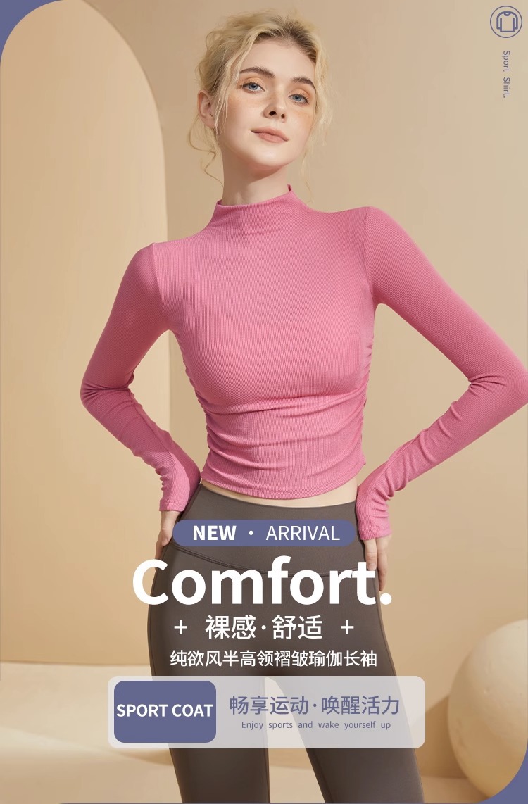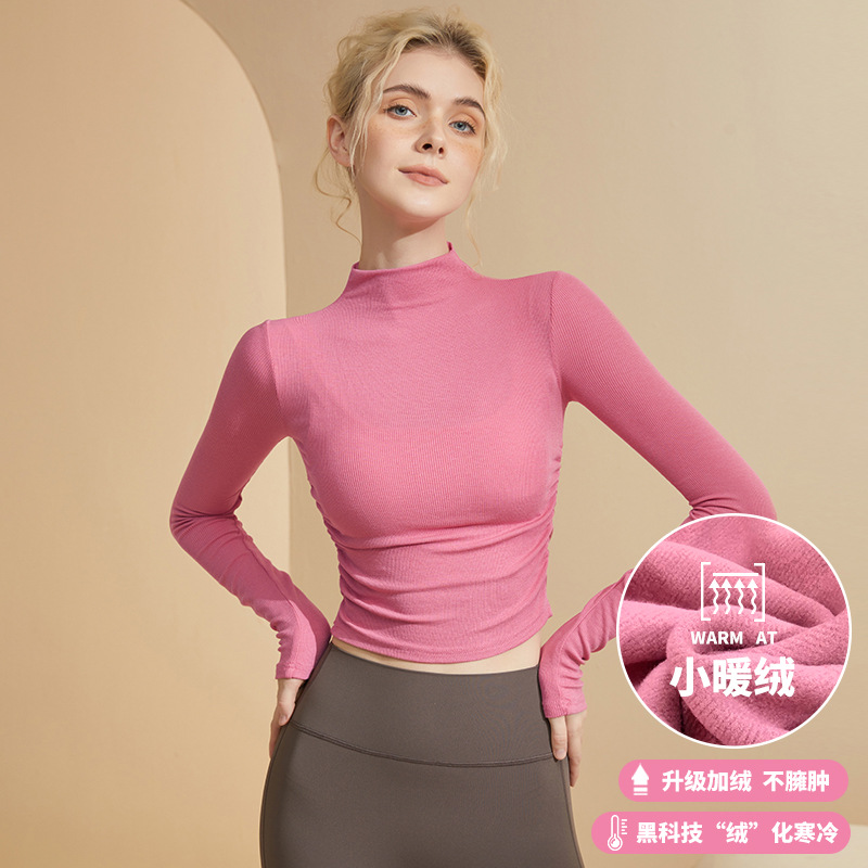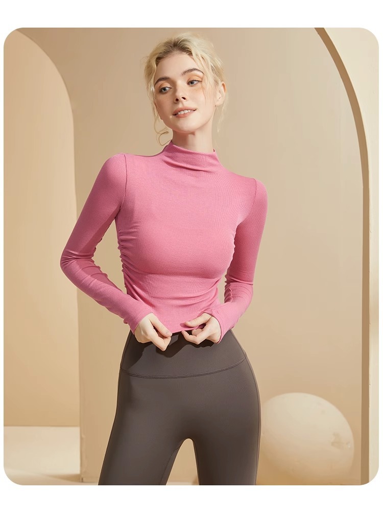 송 스테이션 허리 섹시 요가 세트 긴 소매 필라테스 반 하이 넥 슬림 핏 스트레치 스포츠 탑 기모스토어 가기