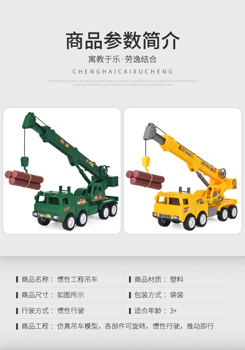 크레인 장난감 어린이 크레인 모델 시뮬레이션 엔지니어링 차량 관성 자동차 남아용 0-6세 3세 교육용