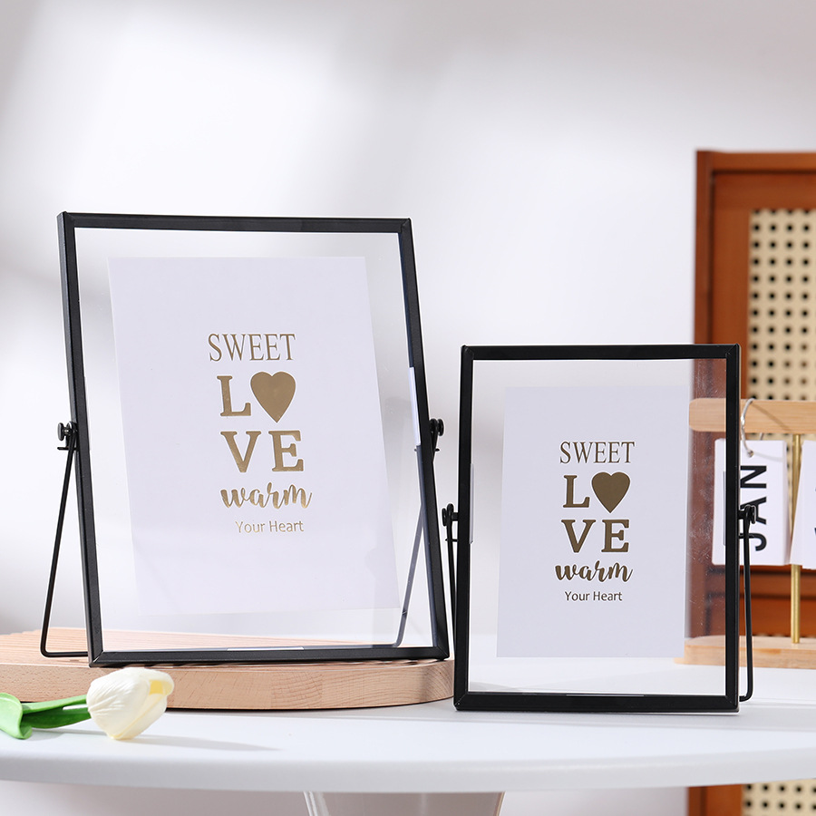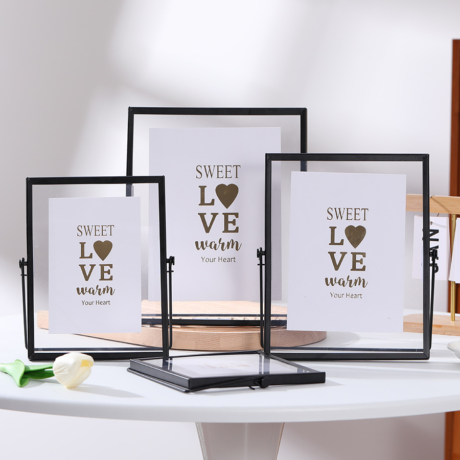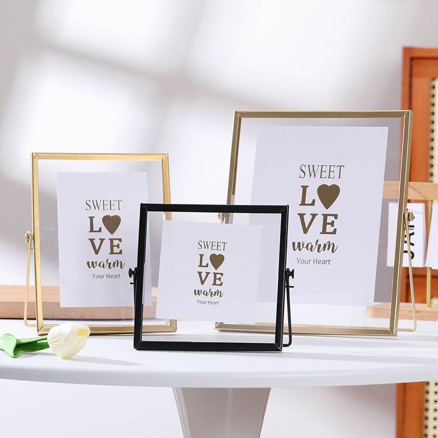 국경 금속 포토 프레임 장식 홈 장식 6 인치 스윙 테이블 8 인치 양각 장식 DIY 말린 꽃 골드 유리 사진 프레임
