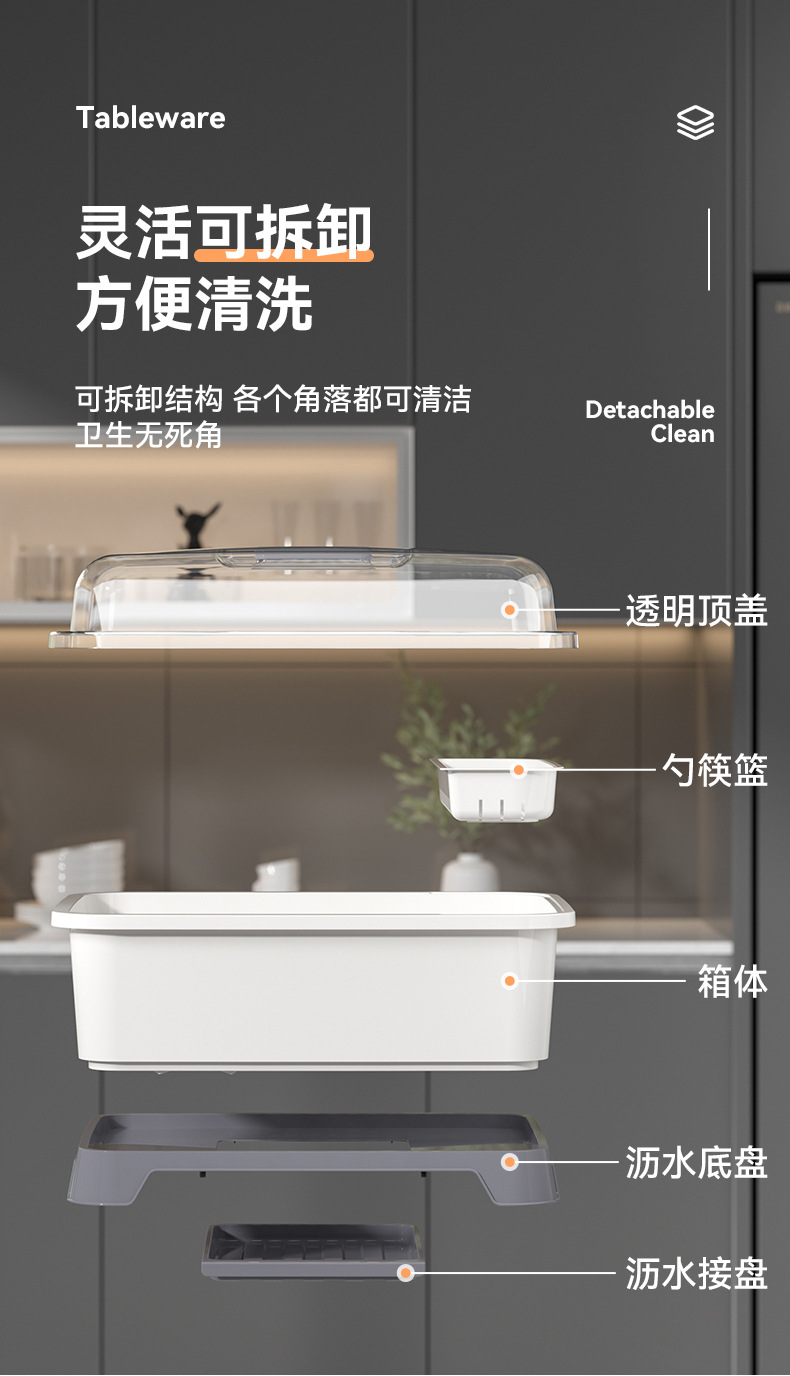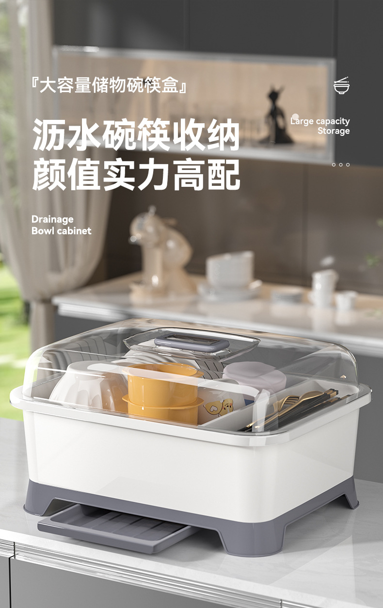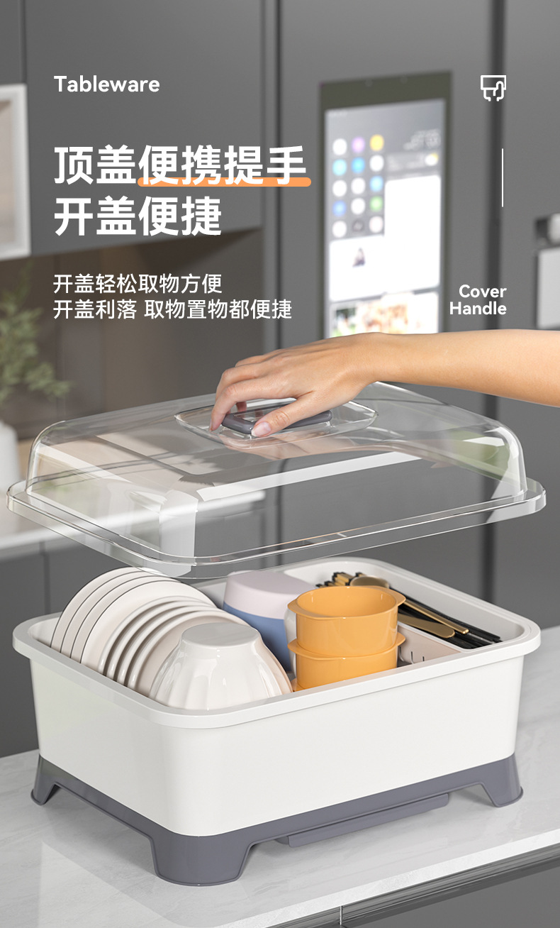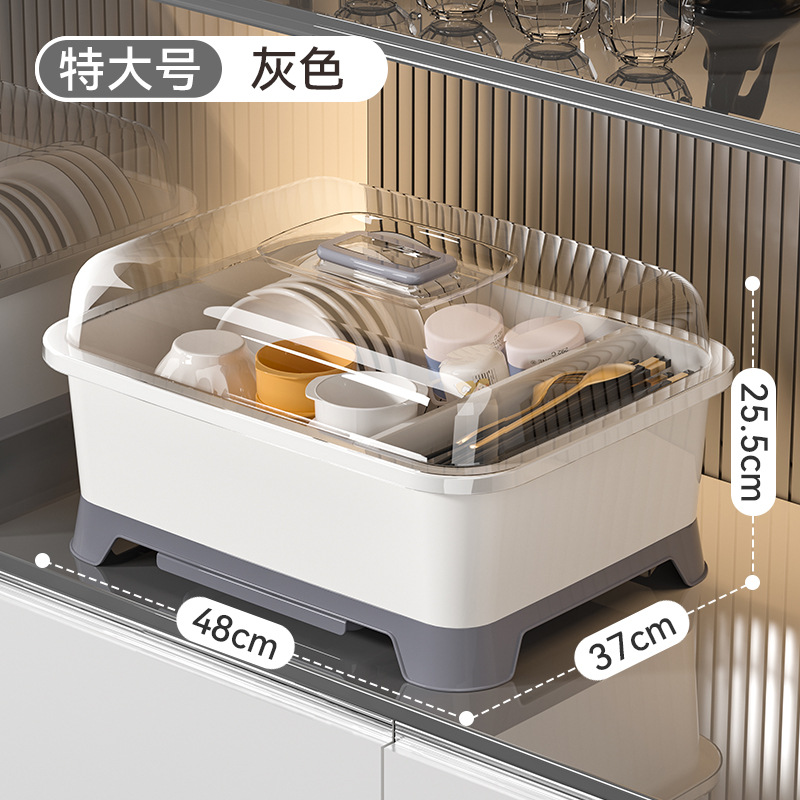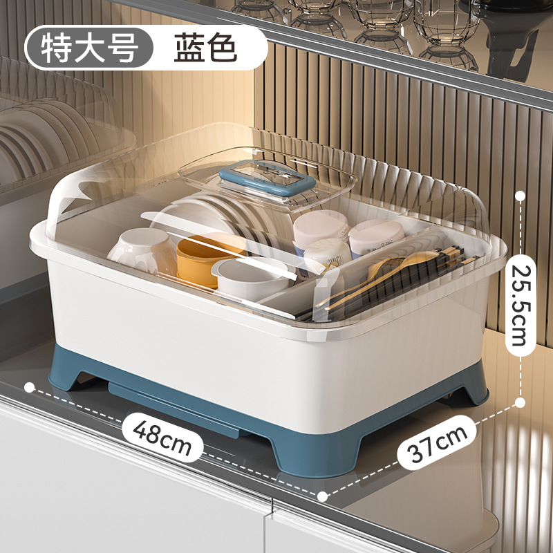 요리 및 접시 저장 랙 뚜껑 가정용 다기능 배수 저장 랙 식기 찬장 상자가있는 주방 보관 상자