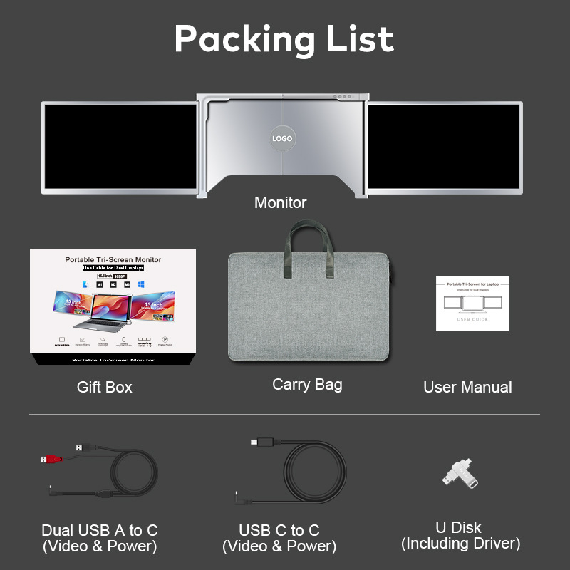 노트북 확장 화면 일체형 휴대용 모니터 접이식 듀얼 스크린 모니터