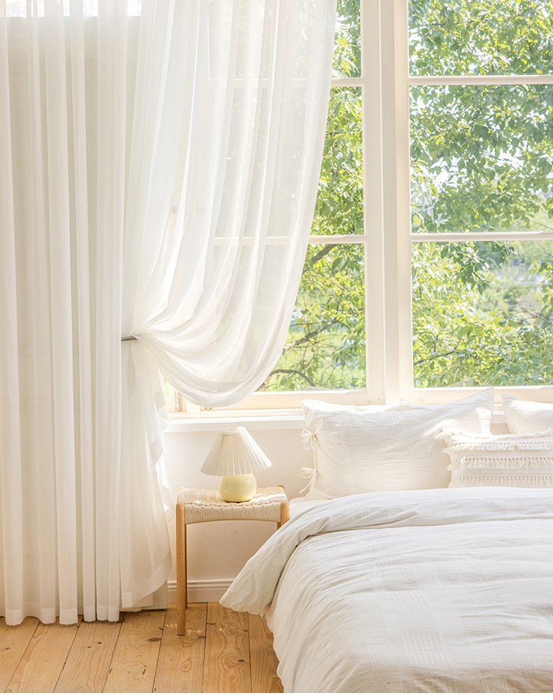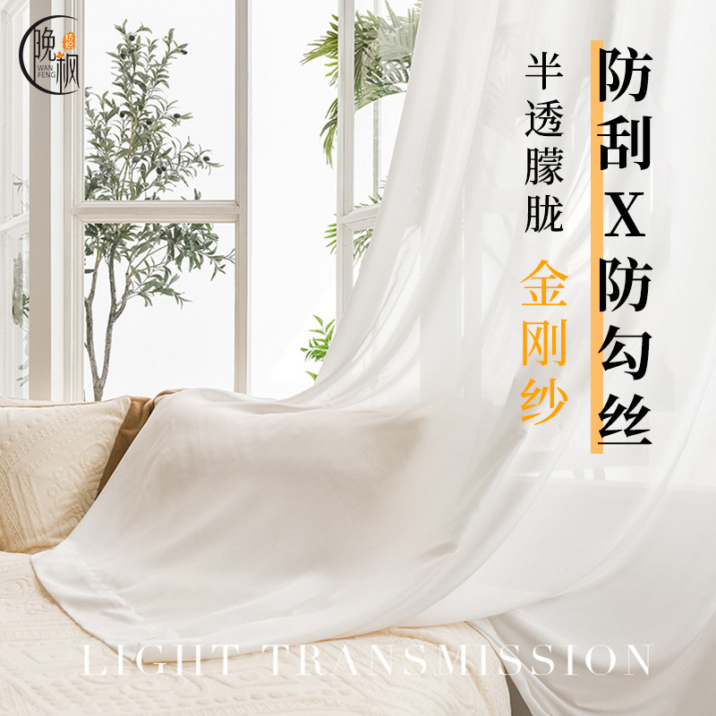 현대 간단한 두꺼운 안티 스크래치 다이아몬드 거즈 투명 흰색 거즈 커튼 침실 거실 발코니 베이 창 화면
