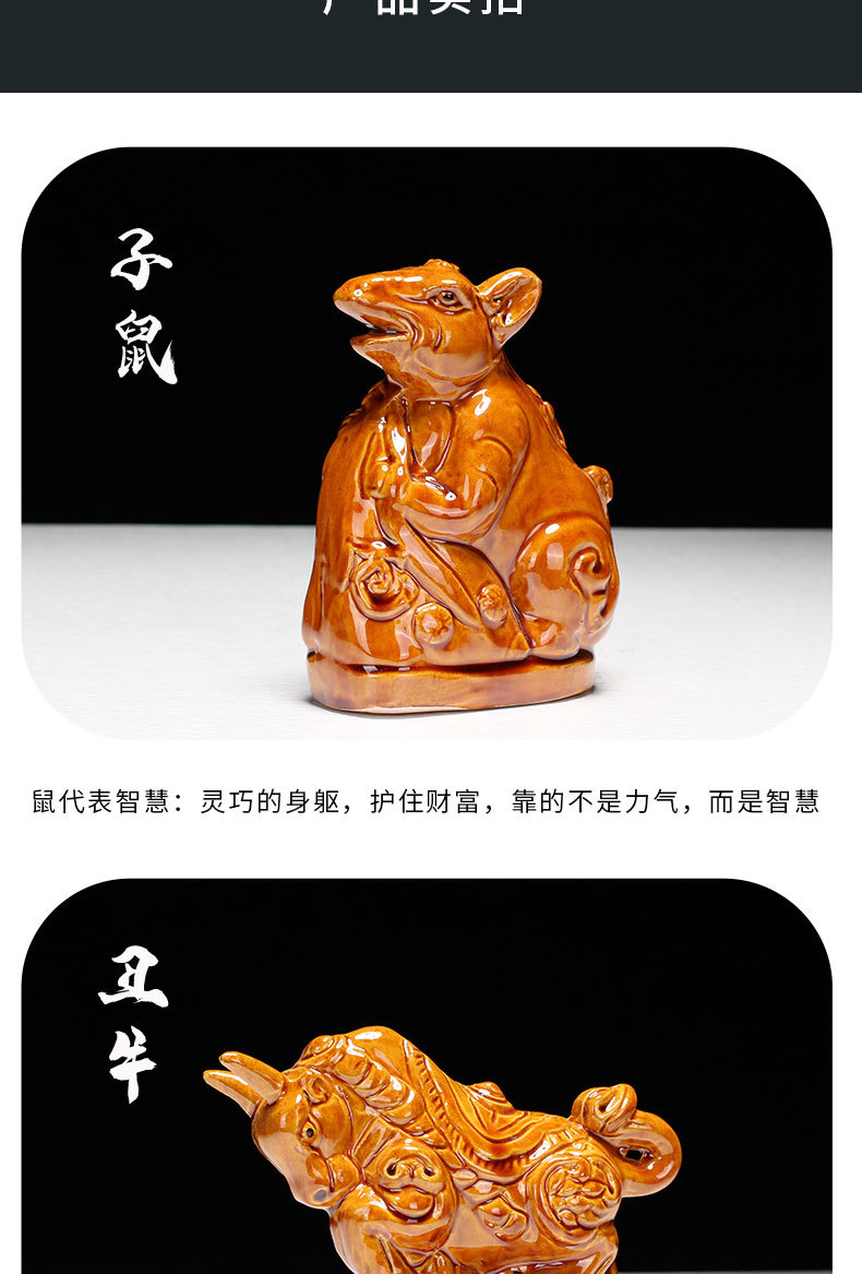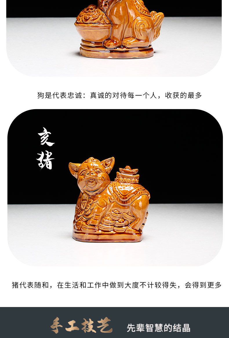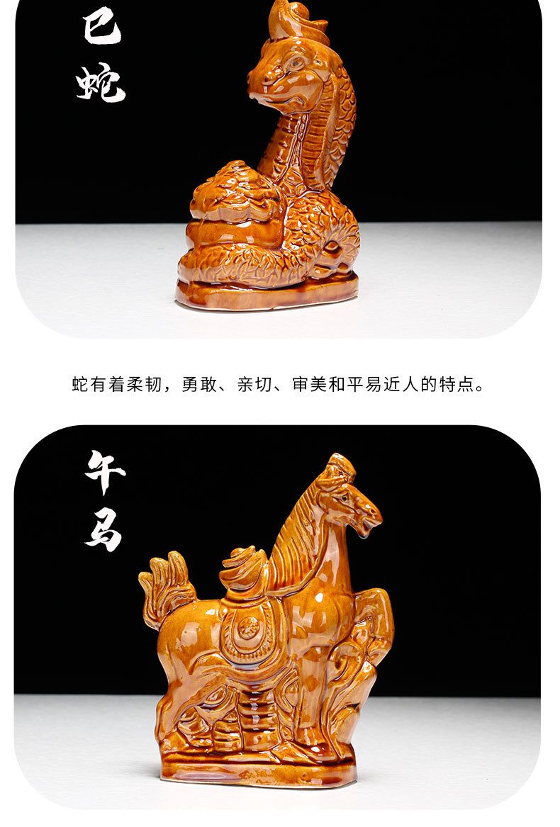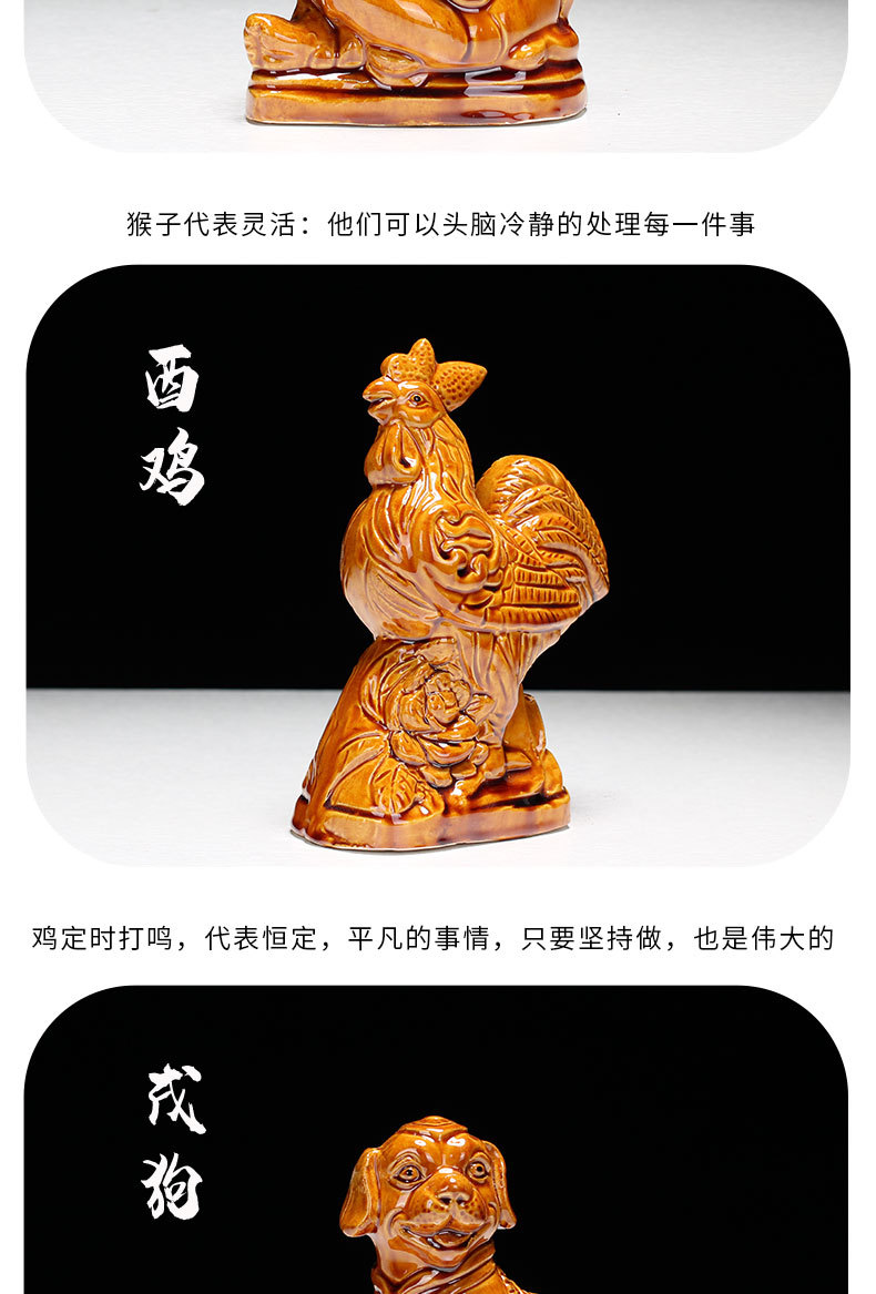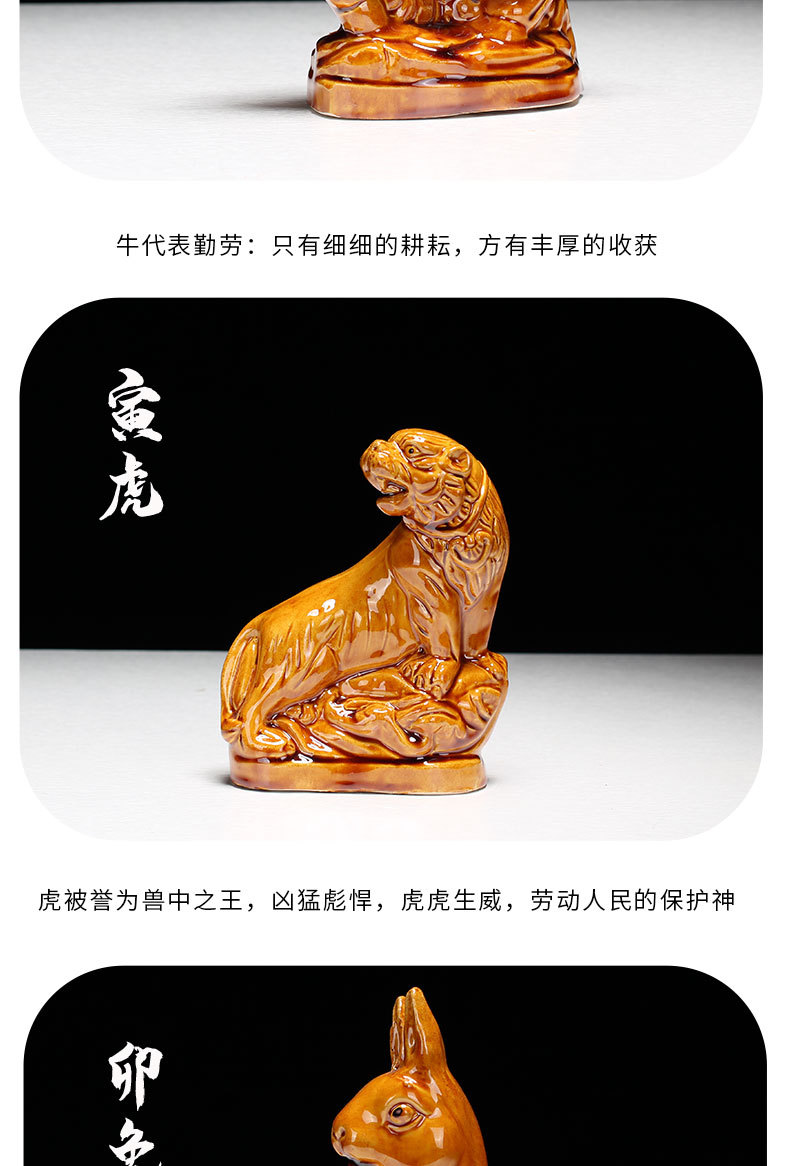 새로운 세라믹 12지신 장식품: 쥐, 소, 호랑이, 토끼, 용, 뱀, 말, 양, 원숭이, 닭, 개, 돼지 - 거실 탁상 및 가정 장식품스토어 가기