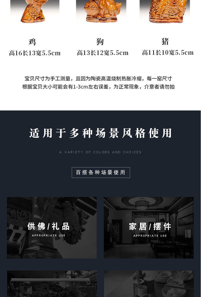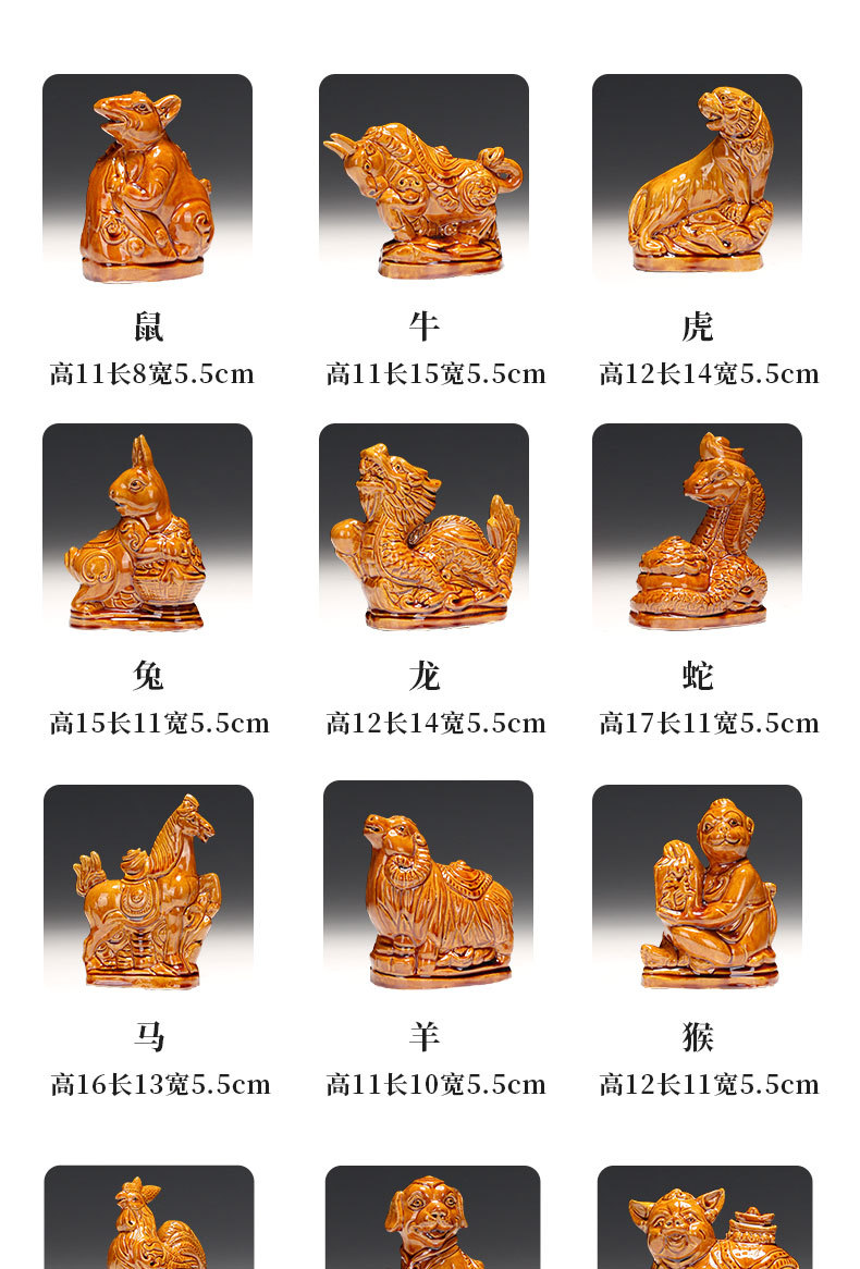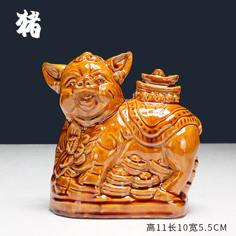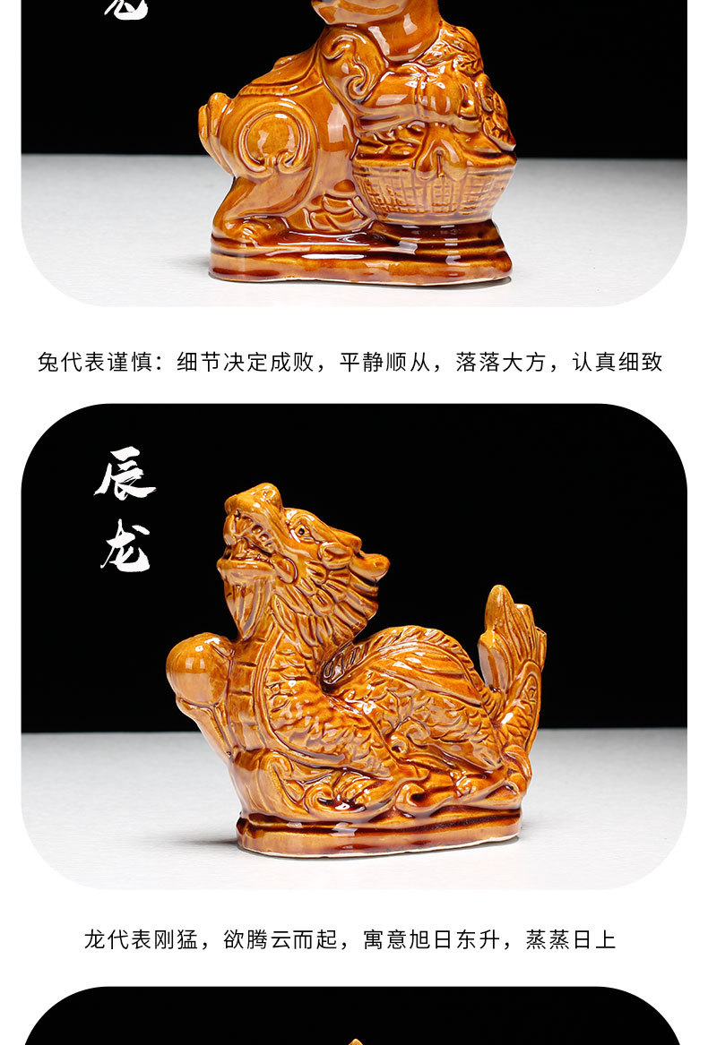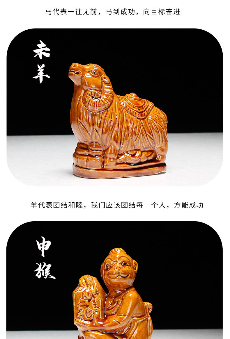 새로운 세라믹 12지신 장식품: 쥐, 소, 호랑이, 토끼, 용, 뱀, 말, 양, 원숭이, 닭, 개, 돼지 - 거실 탁상 및 가정 장식품스토어 가기