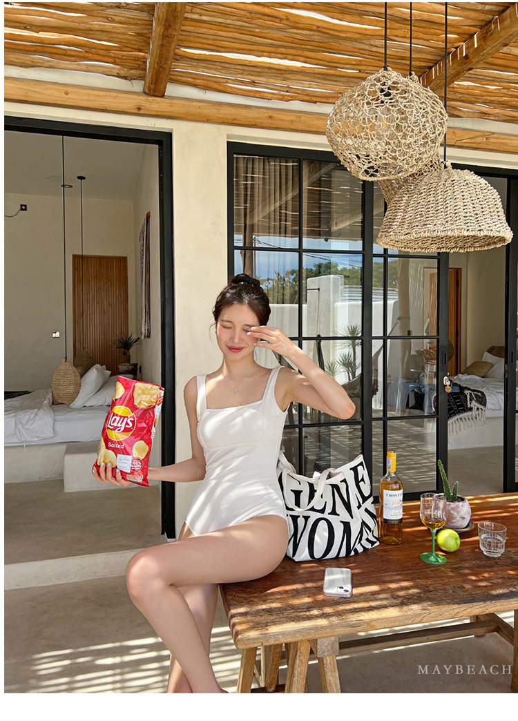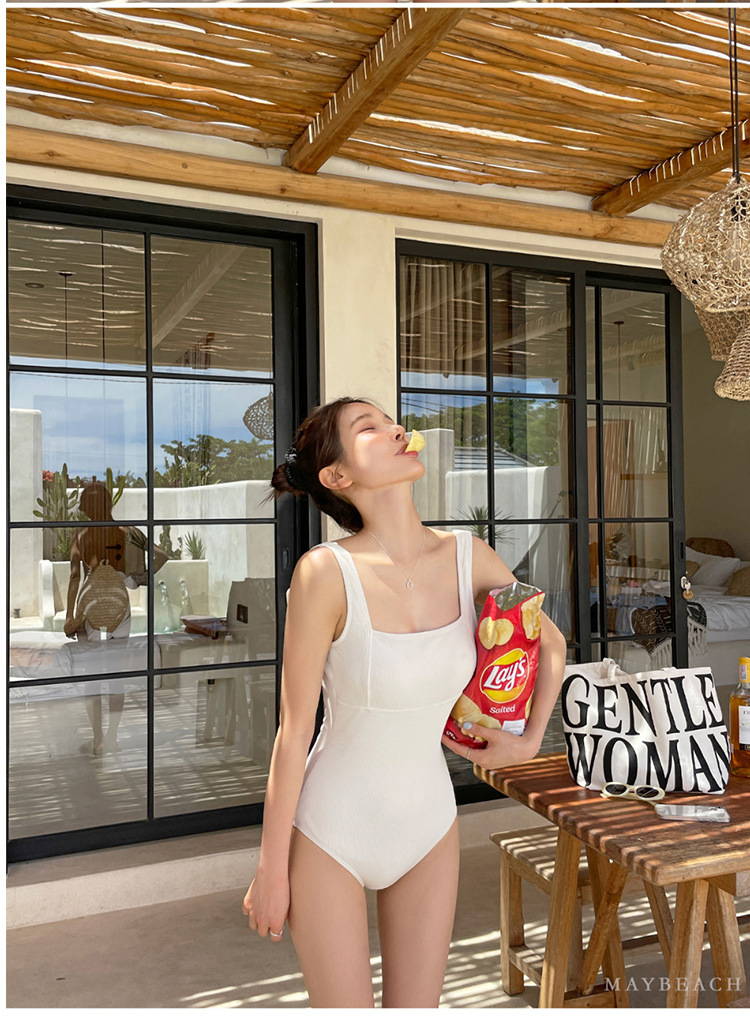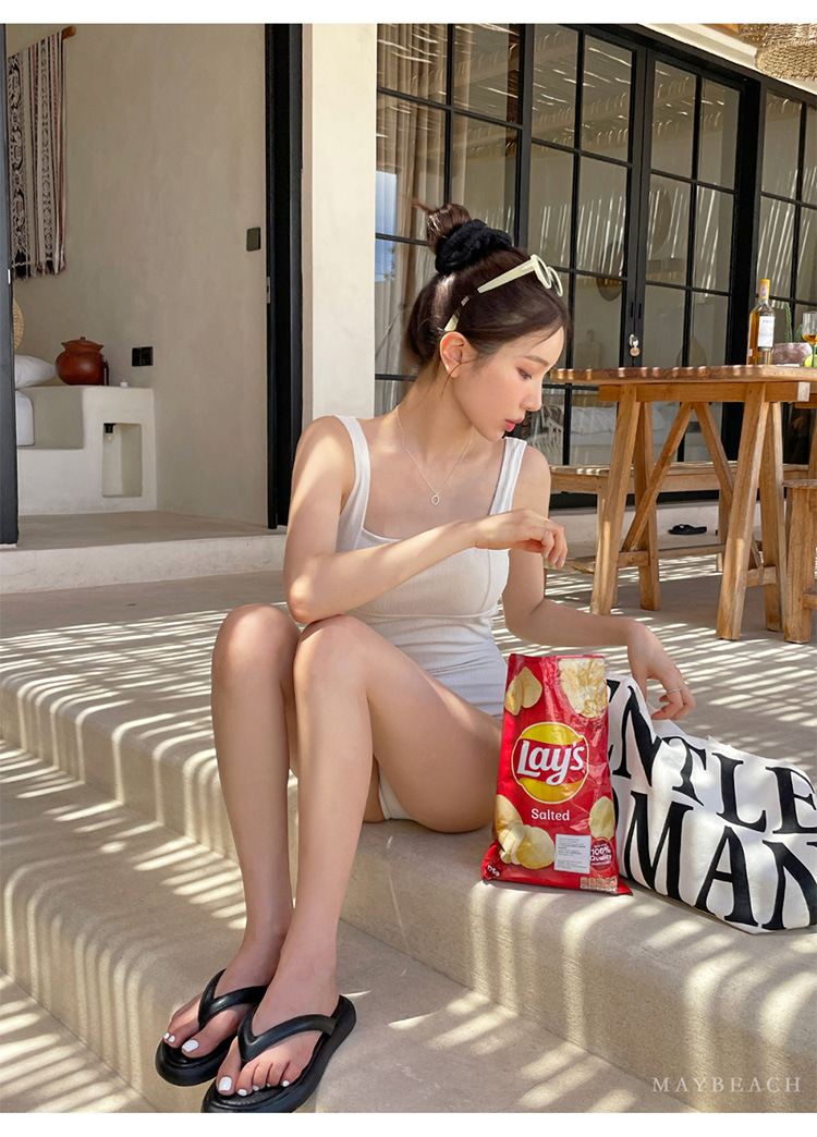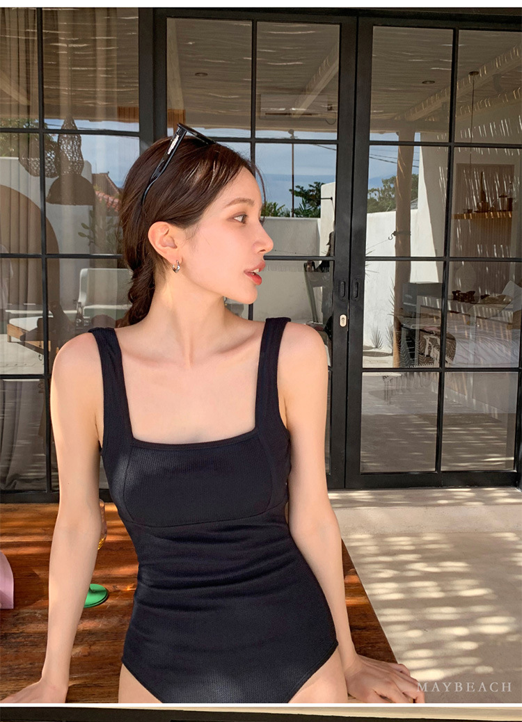 한국 2024 새로운 삼각형 수영복 여자의 단색 간단한 작은 가슴 섹시한 등이없는 뜨거운 봄 수영복스토어 가기