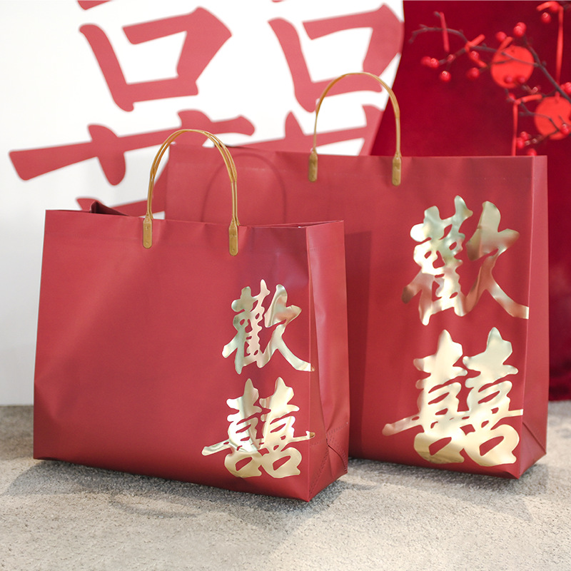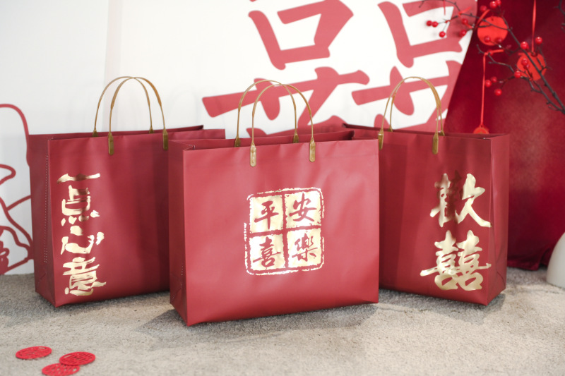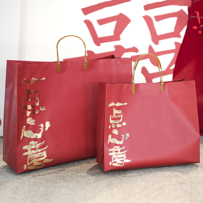 새해 핸드백, 고급스러운 중국 레드 컬러의 축제용 금박 선물 가방, 정교하고 우아한 선물 포장 가방