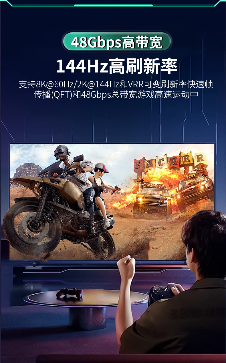 采用HDMI2.1技术,支持48Gbps高速带宽传输。