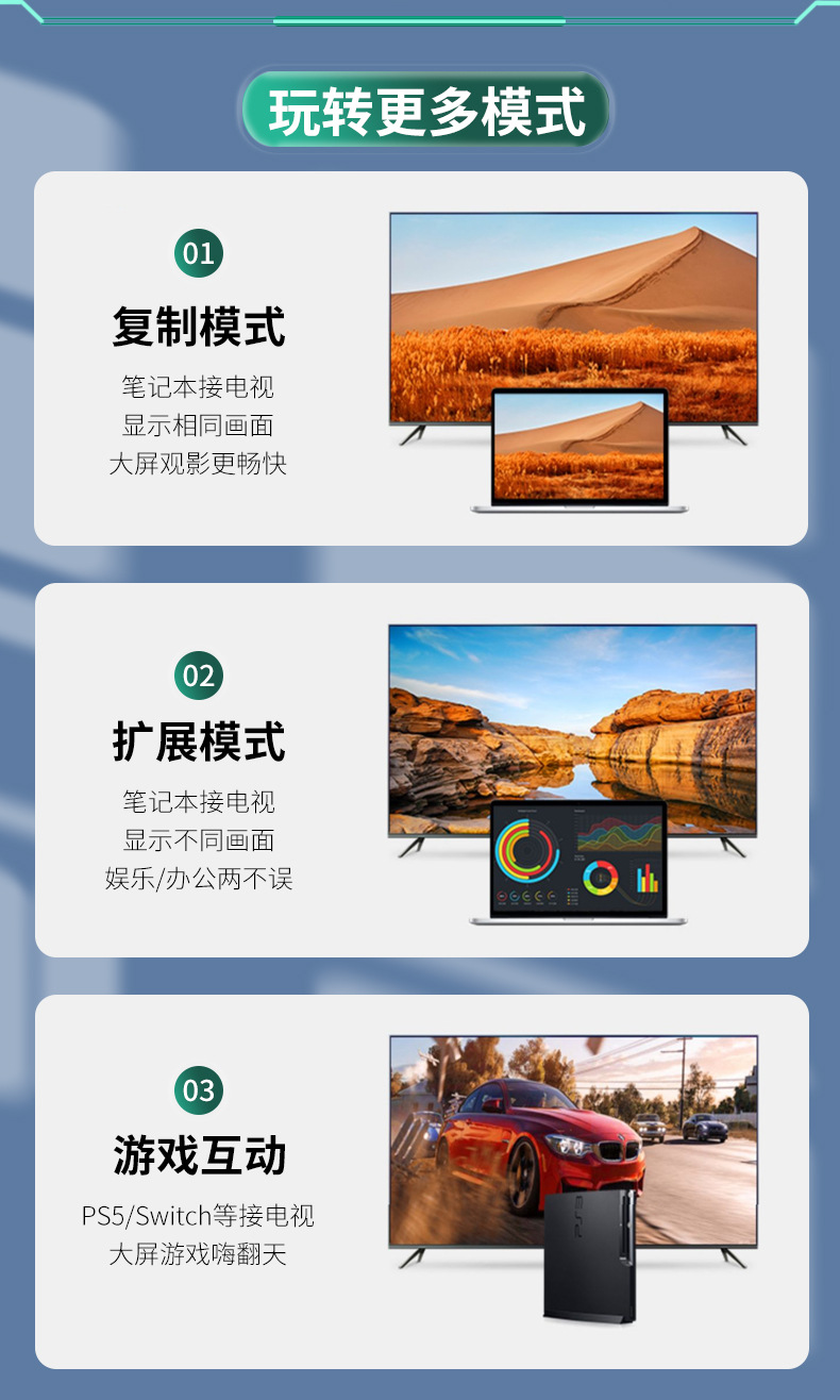 适用设备:兼容2.1及以下的版本,带标准HDMI设备,连接电视,电脑,投影仪,游戏主机,显示器等