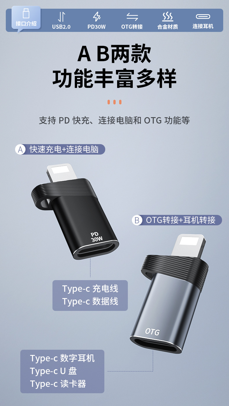 Apple Type-c 어댑터 용 Apple 데이터 케이블 어댑터 PD30W 데이터 전송 otg 어댑터스토어 가기