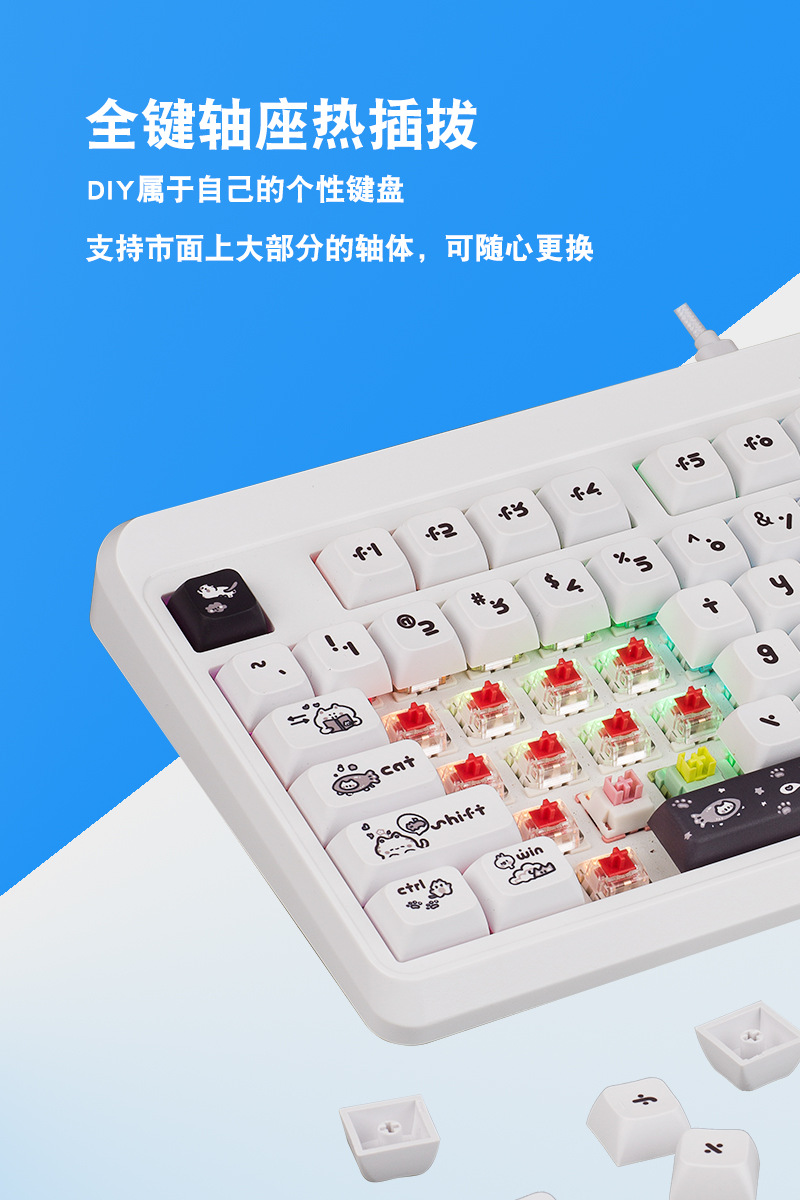 87pro 기계식 키보드 3모드 무선 블루투스 커스터마이징 키트 고급스러운 디자인 사무용 게이밍 레드축 RGB 키캡