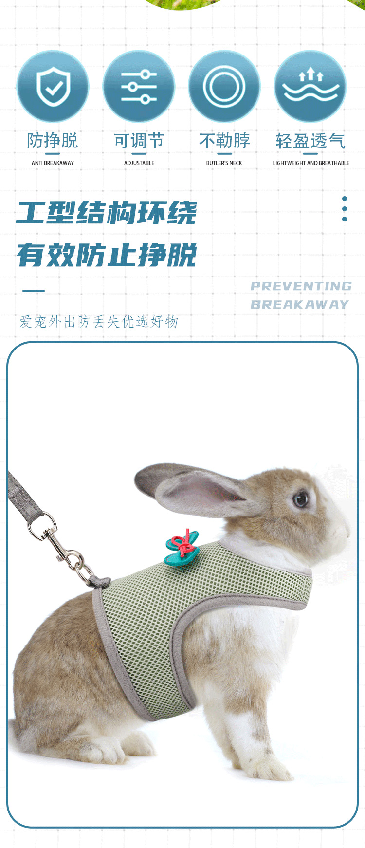 크로스 보더 토끼 커버 가슴 뒤 커버 네덜란드 돼지 토끼 로프 작은 애완 동물 가죽 끈 가슴 뒤 나비 고양이 가죽 끈