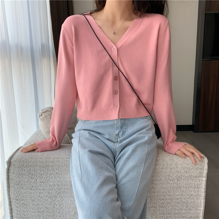 공장 재고 V-넥 단색 에어컨 니트웨어 재킷 가디건 느슨한 짧은 긴 소매 얇은 얼음 실크 탑 여성스토어 가기
