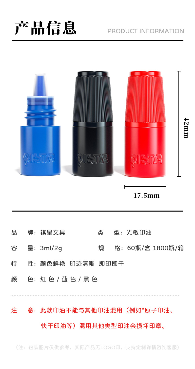 치싱 3ml 감광성 잉크, 감광성 도장용 오일, 작은 병, 빨강, 파랑, 검정 도장 잉크, 교사용 평가 도장