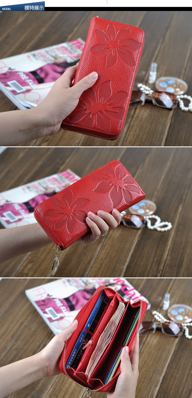 크로스 보더 1 층 소가죽 숙녀 지갑 긴 핸드백 도매 공장 다이렉트 가죽 여성 지갑 소스 공장