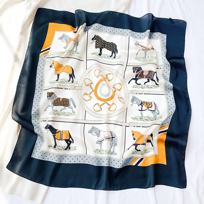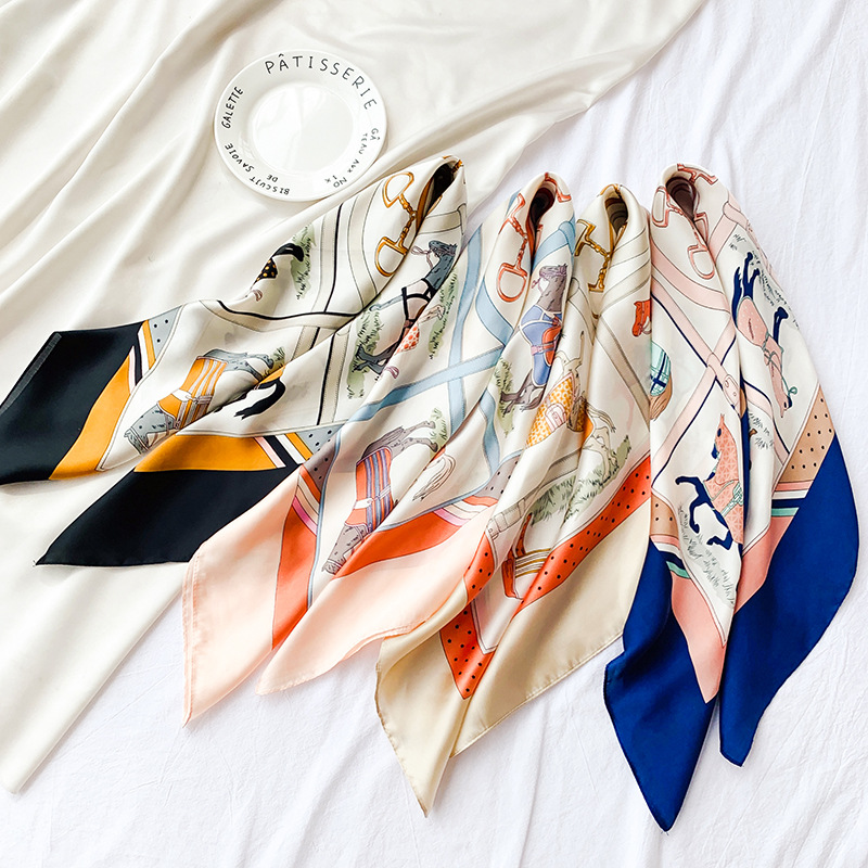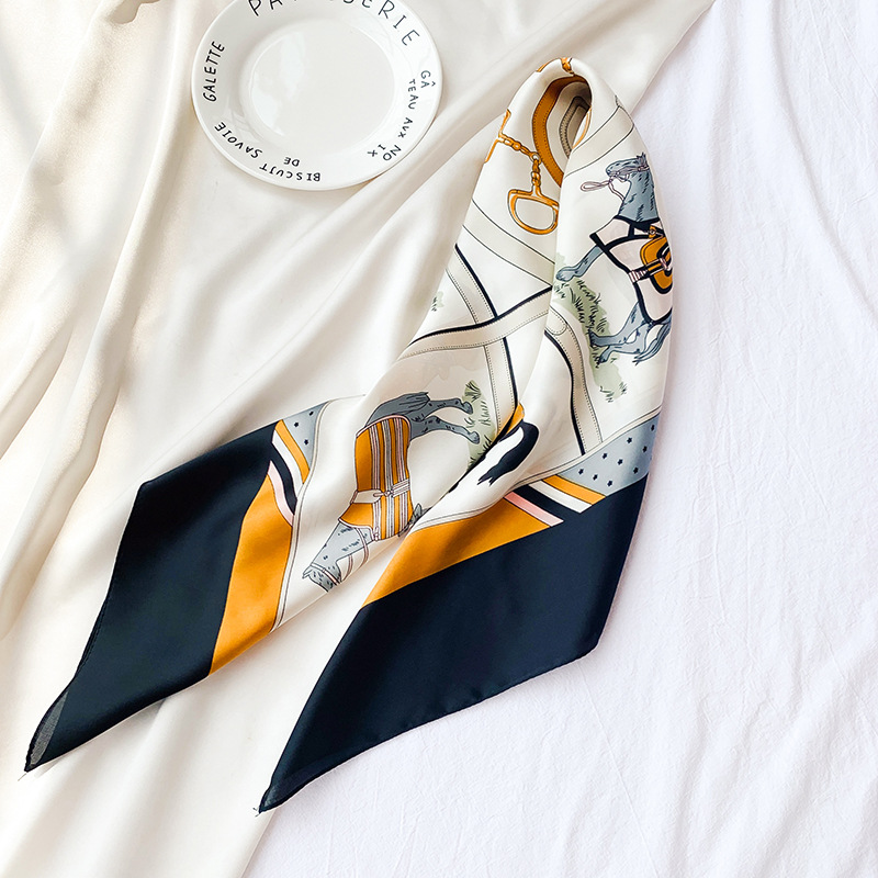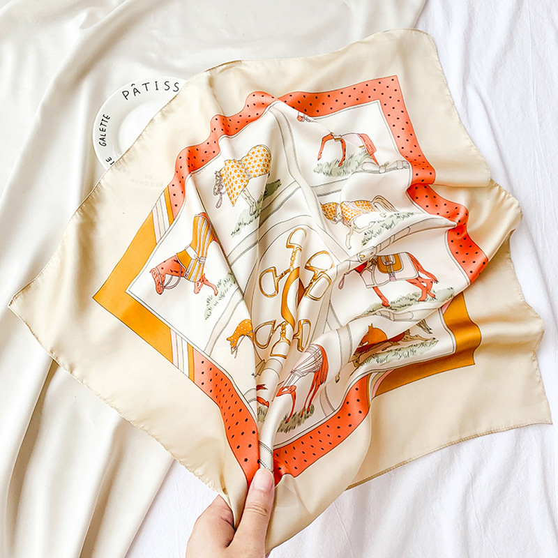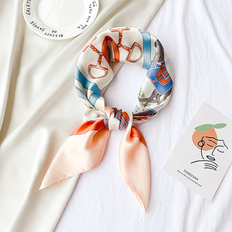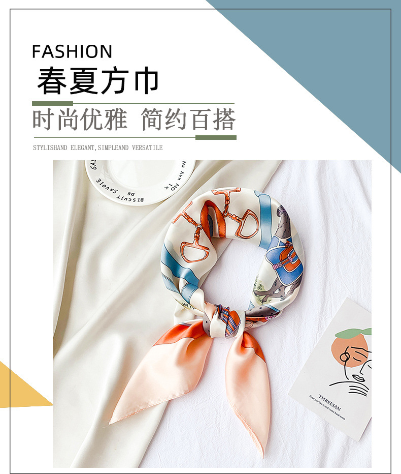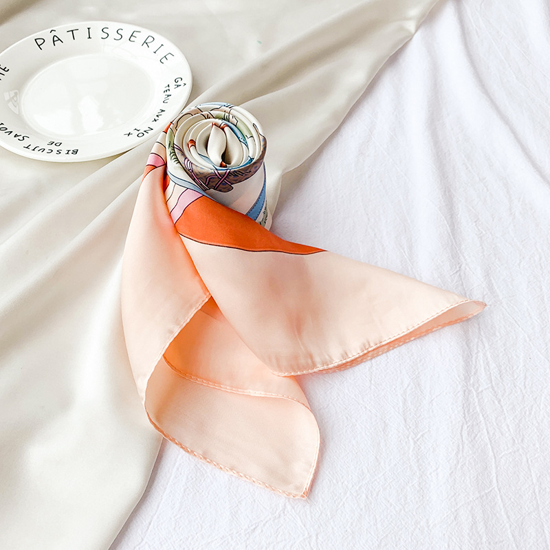 70 새틴 쉬폰 스카프 여성의 프랑스 새로운 스타일 모조 실크 10 말 인쇄 작은 사각형 스카프 선물 스튜어디스 스카프스토어 가기
